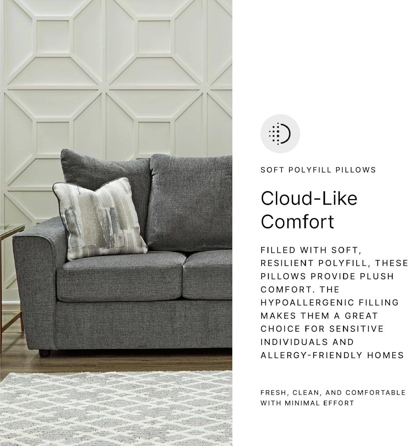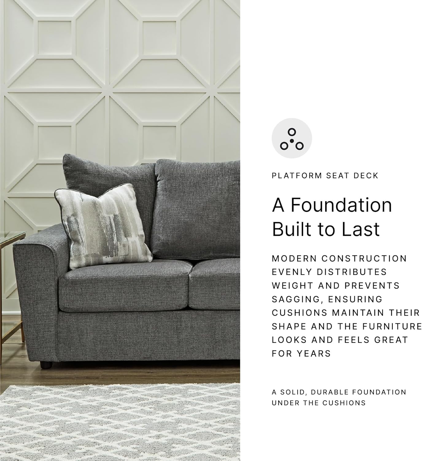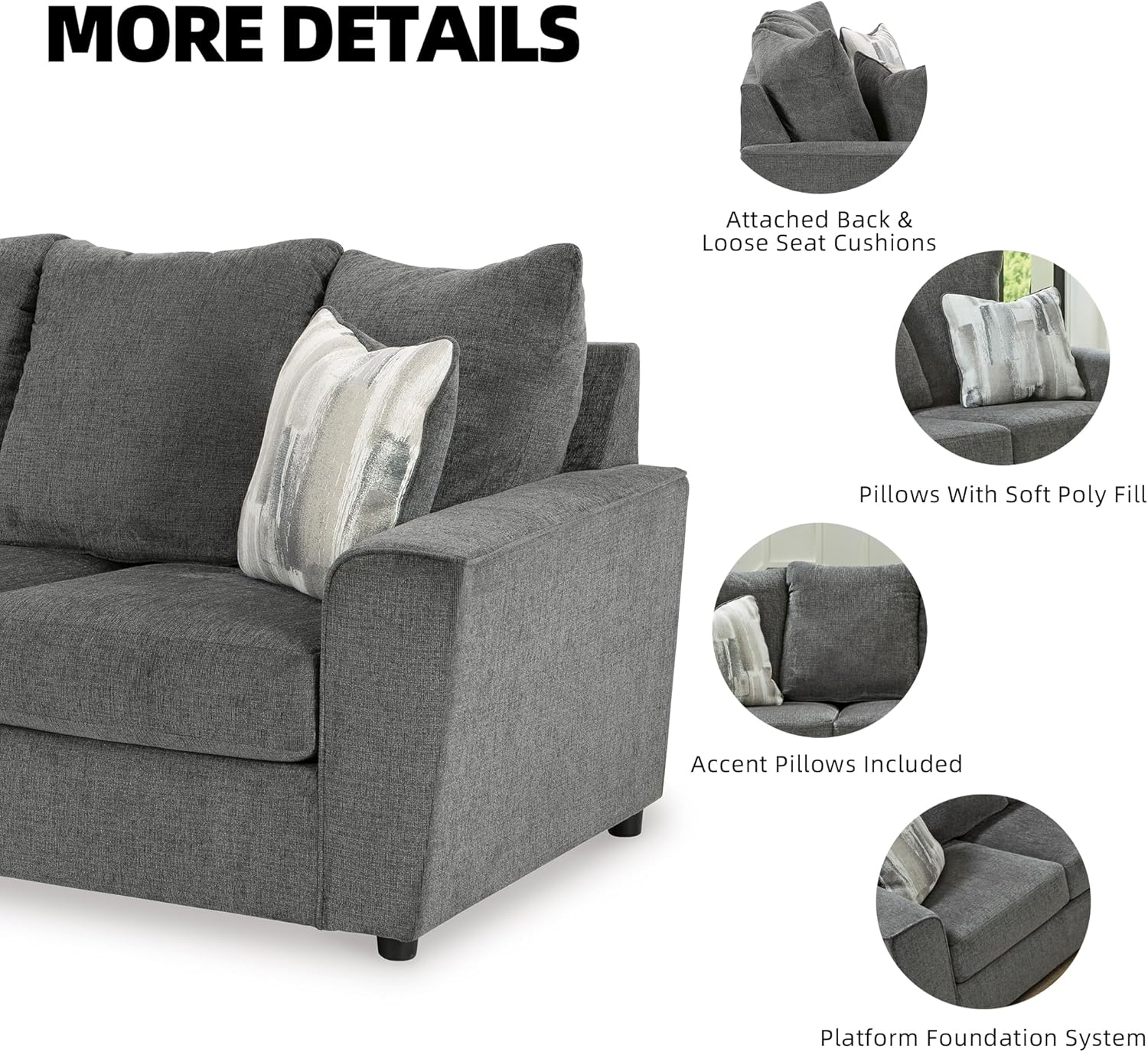 QUALITY MADE: Built with a corner-blocked frame. Polyester upholstery covers the attached back and loose seat cushions