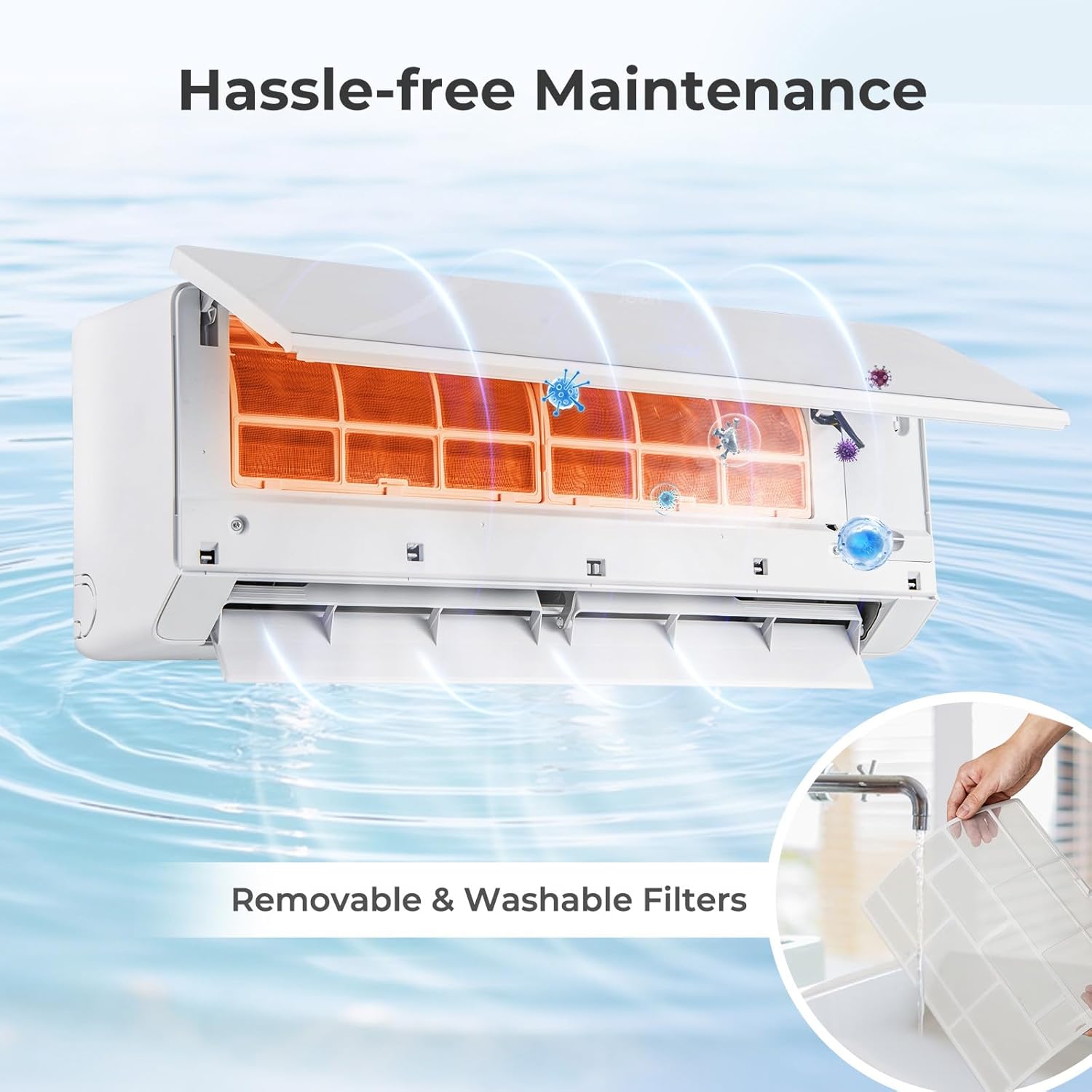 Versatile Modes for Custom Comfort: The ductless system offers 6 operational modes (auto/cool/heat/dry/fan/sleep) and 5 adjustable wind speeds (auto/low/mid/high/strong) to suit diverse needs. Additional features like auto swing, temperature-sensing "feeling" mode, and health-focused settings enhance daily comfort.