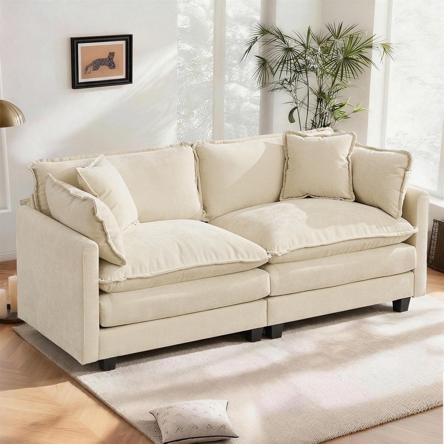 • 77.95" Chenille Sectional Sofa, Comfy Modular Loveseat Sofa, Modern 2-Seat Couch Deep Seat Sofa Set for Living Room,Beige