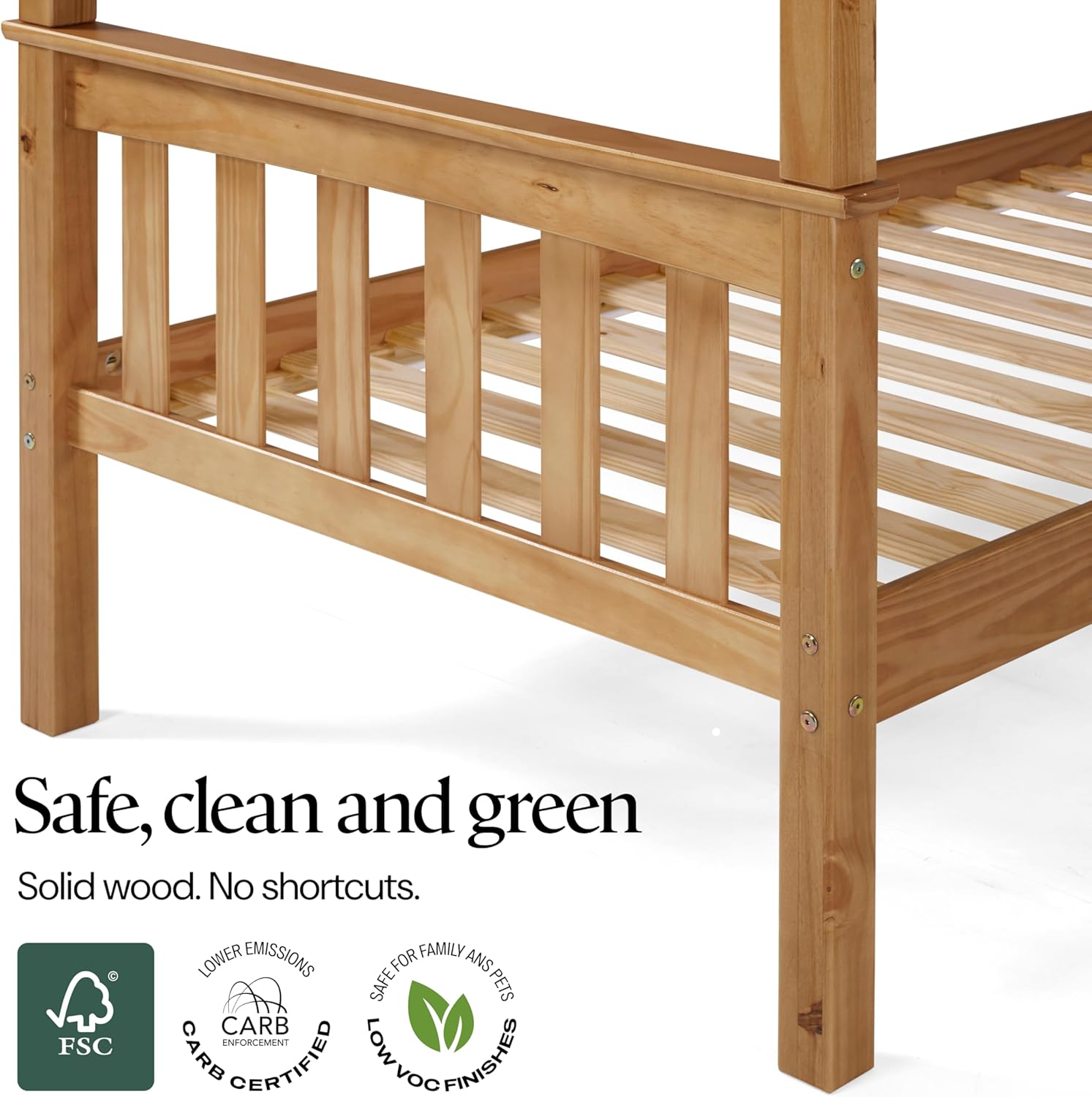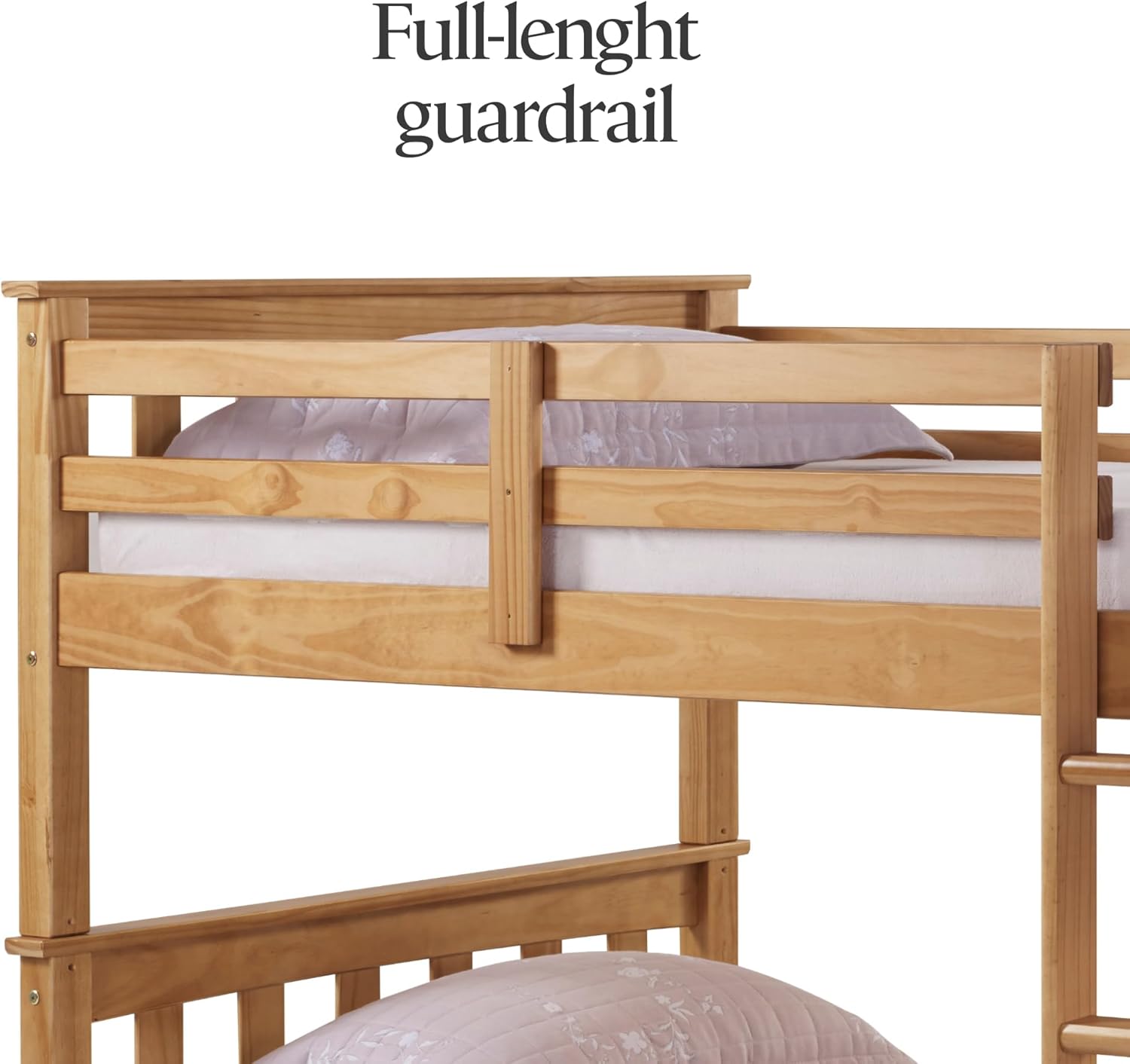 SAFE DESIGN WITH LADDER AND RAILS Equipped with secure safety rails on the top bunk and an easy-access ladder, this bed provides peace of mind, ensuring a safe sleep environment for kids and teens. Durable, solid wood slats are included for added support and stability.