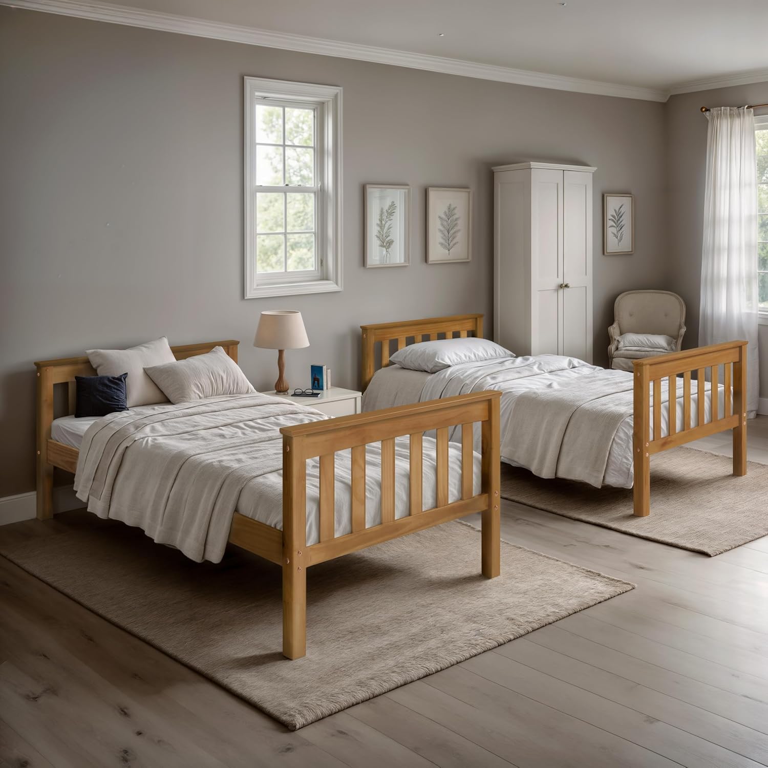 SPACE-SAVING DESIGN FOR SHARED ROOMS This twin over twin bunk bed maximizes floor space, making it ideal for shared bedrooms or smaller spaces. The convertible design allows you to separate the bunk into two individual twin beds for added versatility as needs change. Designed to fit any standard twin mattress (mattresses not included), it offers flexibility for growing families.