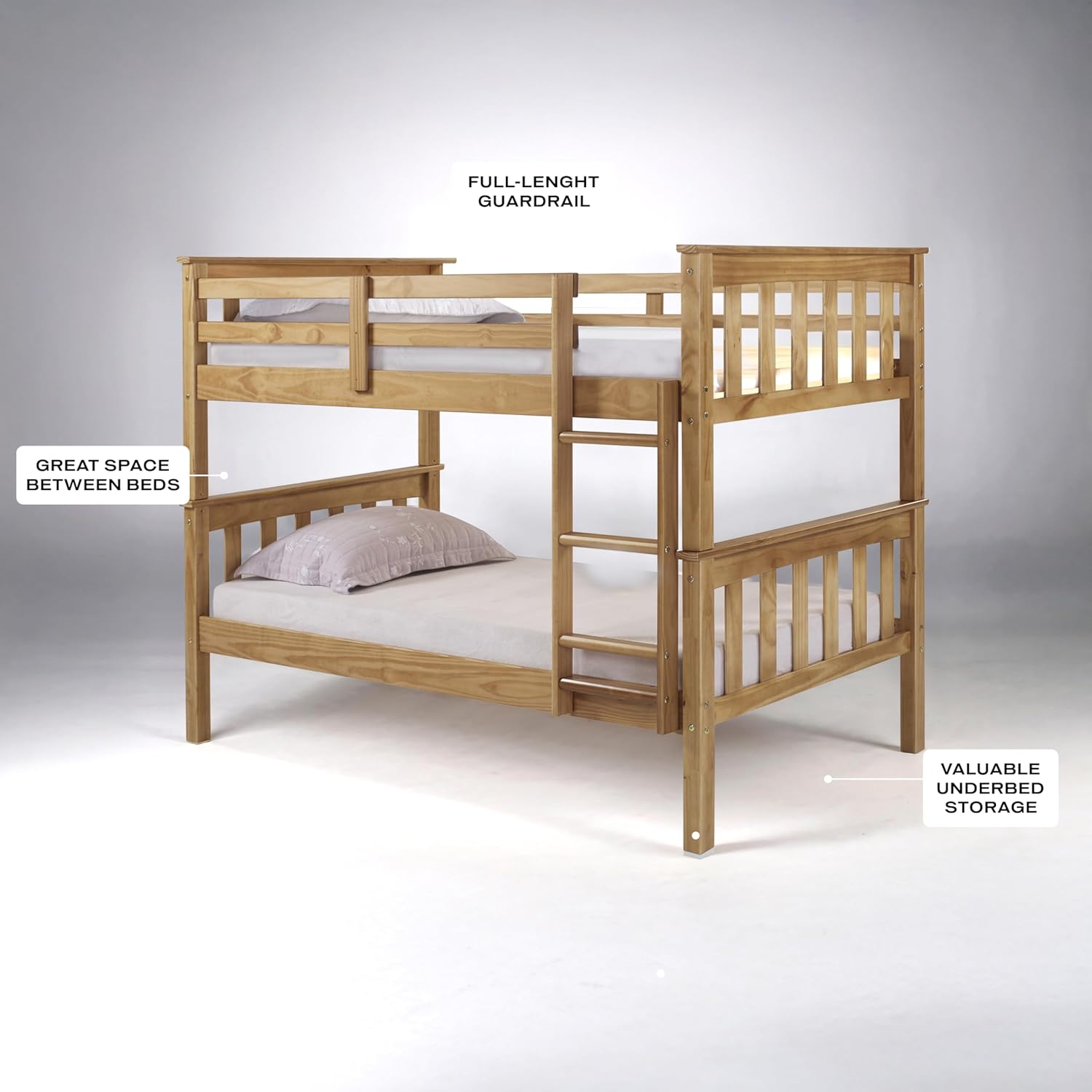 STYLISH COLOR OPTIONS FOR ANY ROOM Available in white, grey, and neutral finishes, this bunk bed complements various room styles, from modern to rustic, allowing you to match it with any decor.