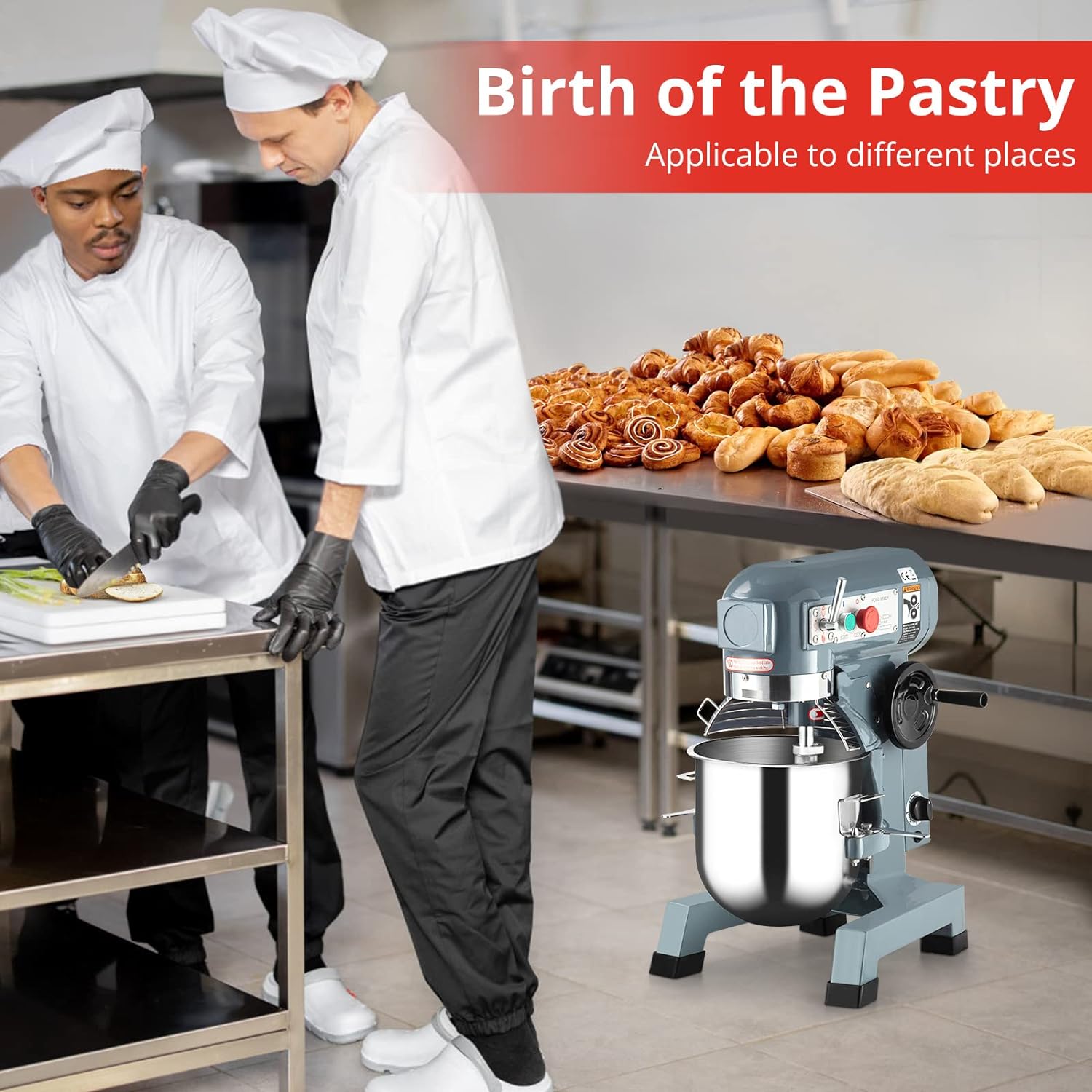 High Efficiency & High PerformanceThis industrial mixer is up to hygienic standards. All parts that touched with foods adopt food-grade 304 stainless steel. The 15Qt capacity bowl is large enough to mix for 3.5 lbs dough in one-go, meeting your various commercial needs.