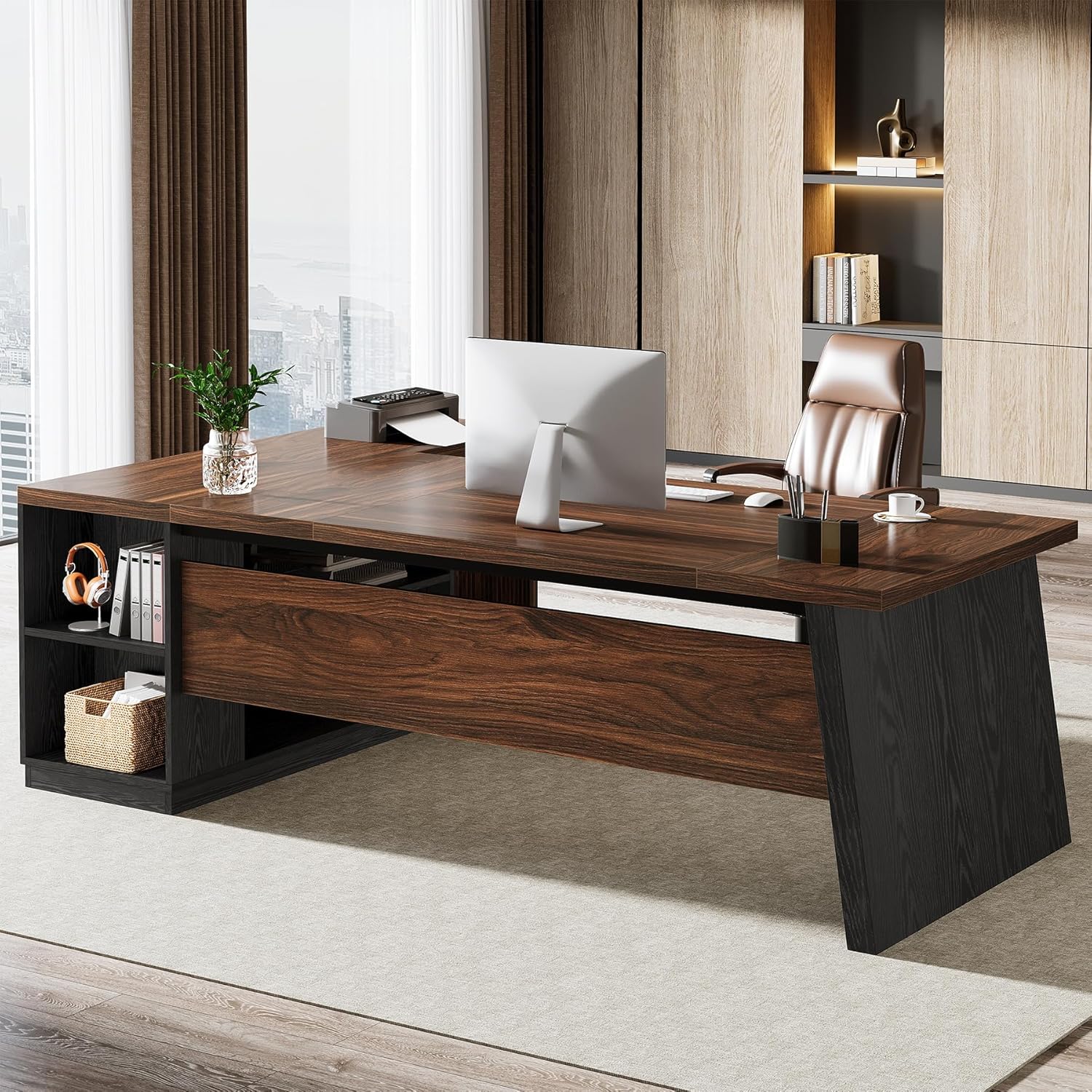 Stable & Long-Lasting: Built with premium MDF material, this computer desk with drawers ensures durability and high weight capacity, plus adjustable feet for stability on uneven floors