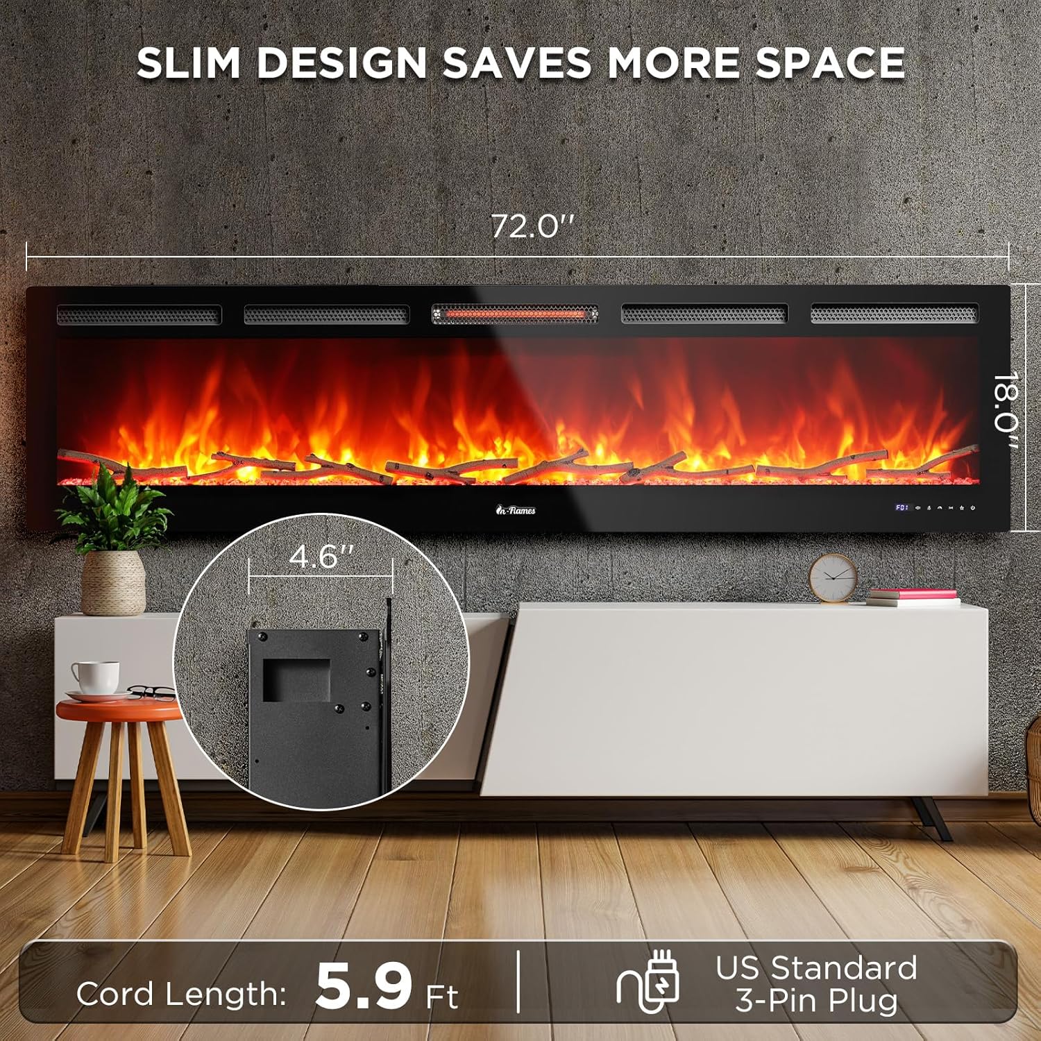 Modern Home Decor: In Flames INF72W-3D comes with beautiful resin birth log sets and crystals. You can decorate your fireplace to your favor and enjoy the charming view. Its ideal for the living room, bedroom, entertainment center, office, restaurant, and hotel.