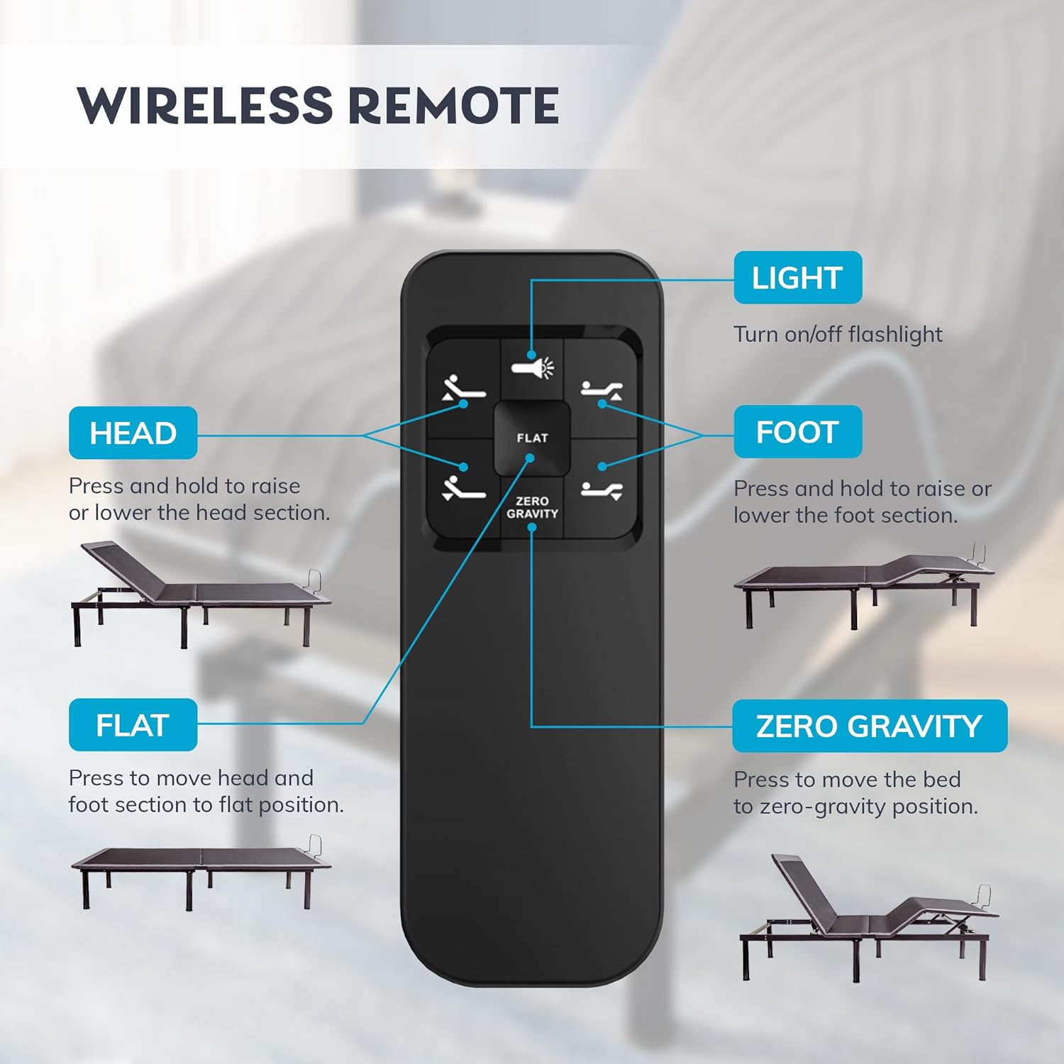 Improved Comfort: The adjustable bed base can help improve overall comfort. By being able to adjust the position of the bed, you can find the perfect angle for sleeping, reading, or watching TV. This can help to reduce pressure points, relieve pain, and improve sleep quality.They are also great for people with mobility issues who need to adjust the bed to a specific height.