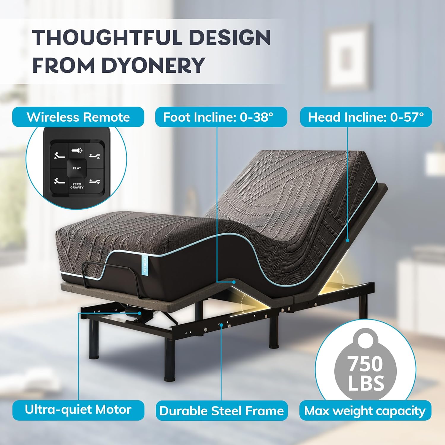 • Twin XL Adjustable Bed Base Frame with 14 Inch Cooling Copper Memory Foam Mattress, Wireless Remote & Head and Foot Incline, Zero Gravity, CertiPUR-US Certified & Fiberglass Free, 80" 38"
