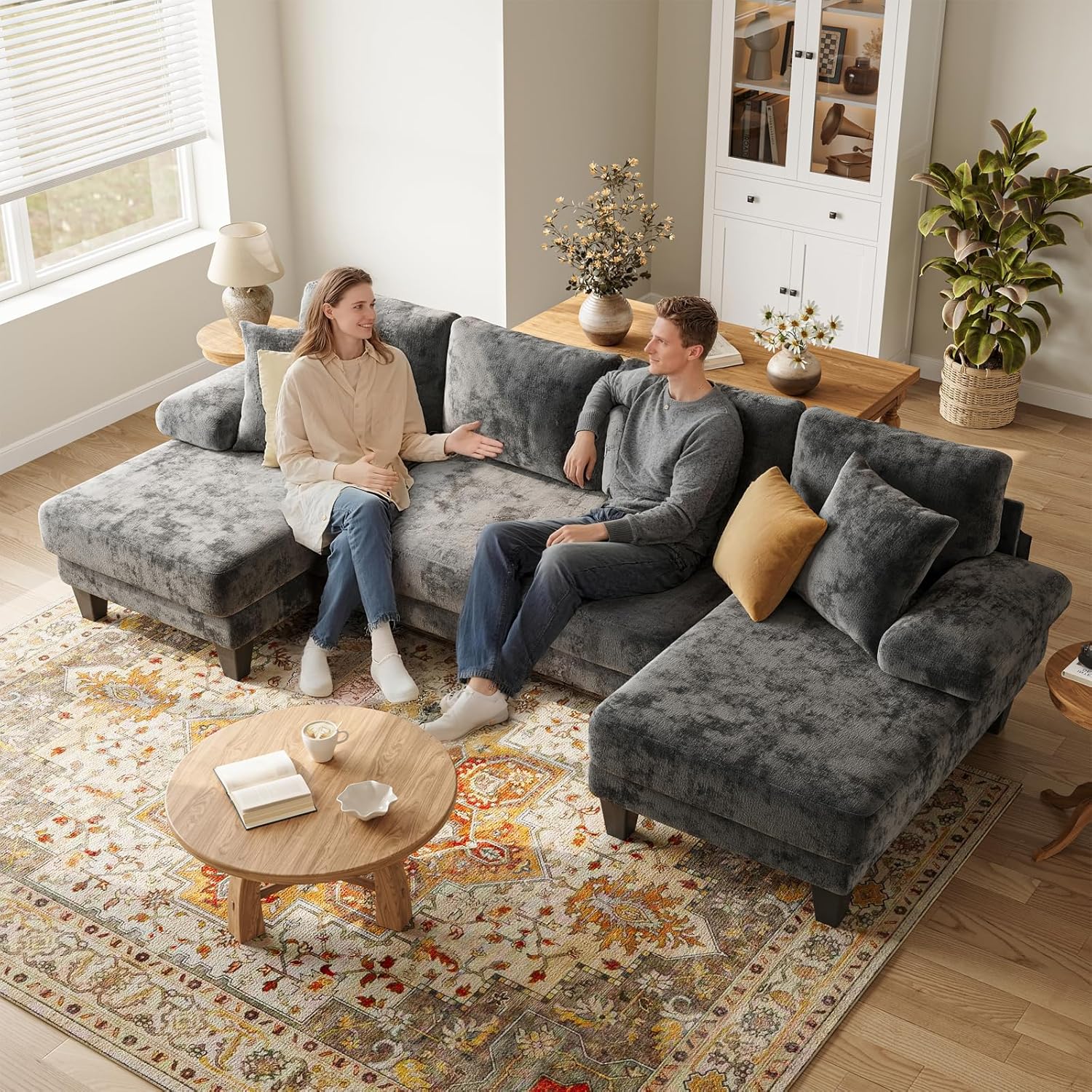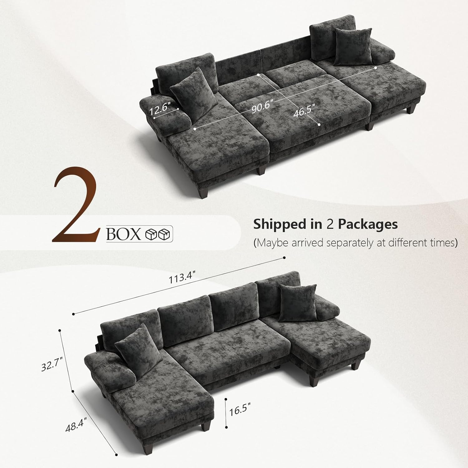 U-SHAPED DESIGN This U shaped couch measures 112" W x 48" D x 32" H, offering substantial seating space. Double chaise designed for optimal comfort, this pull out sofa bed features a 17" height and 26" deepth seat, providing exceptional leg support.