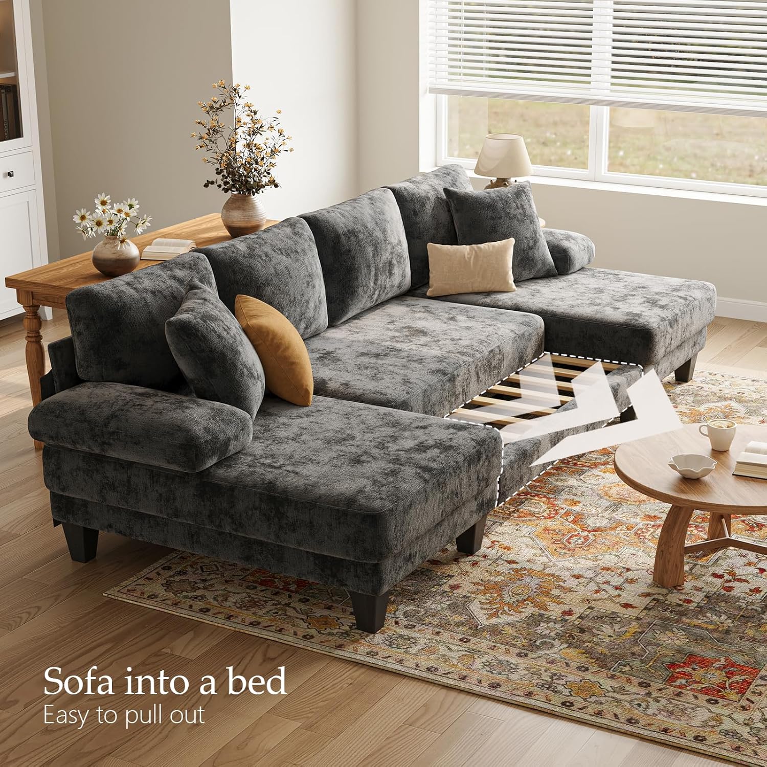 PREMIUM CHENILLE FABRIC & CLOUD-COMFORTABLE The soft chenille fabric and high-density foam of the pull out couch cushions and pillows allow the sofa bed couch itself to gently fit to the shape of your body. This provides a weightless, relaxing experience that will help you unwind and forget your day.
