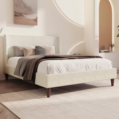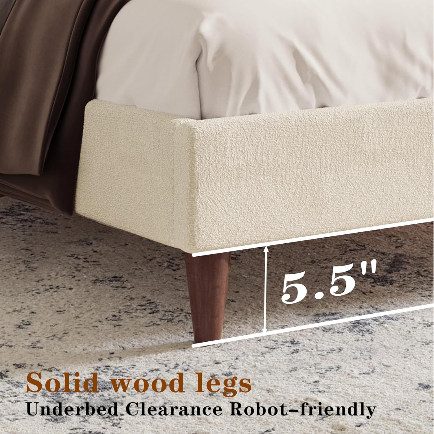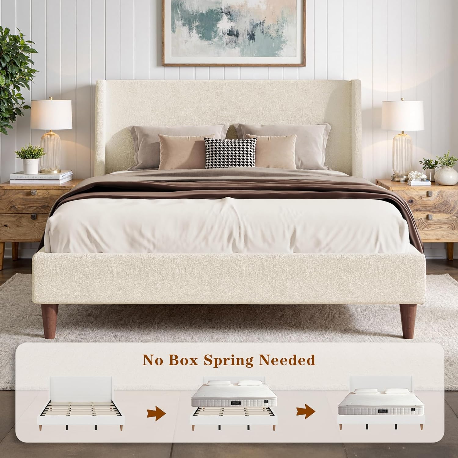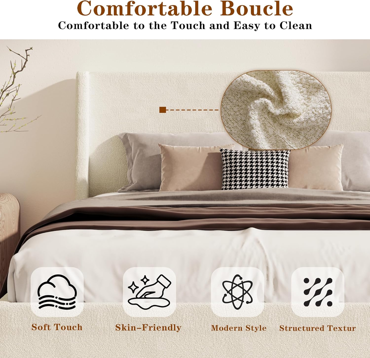 Durable & Sturdy Construction: Designed for comfort and long-lasting use, this upholstered queen bed frame with headboard boasts a solid metal construction with a wooden slats base that provides robust support. The metal side rails add further stability, ensuring your bed remains quiet and comfortable for years to come.