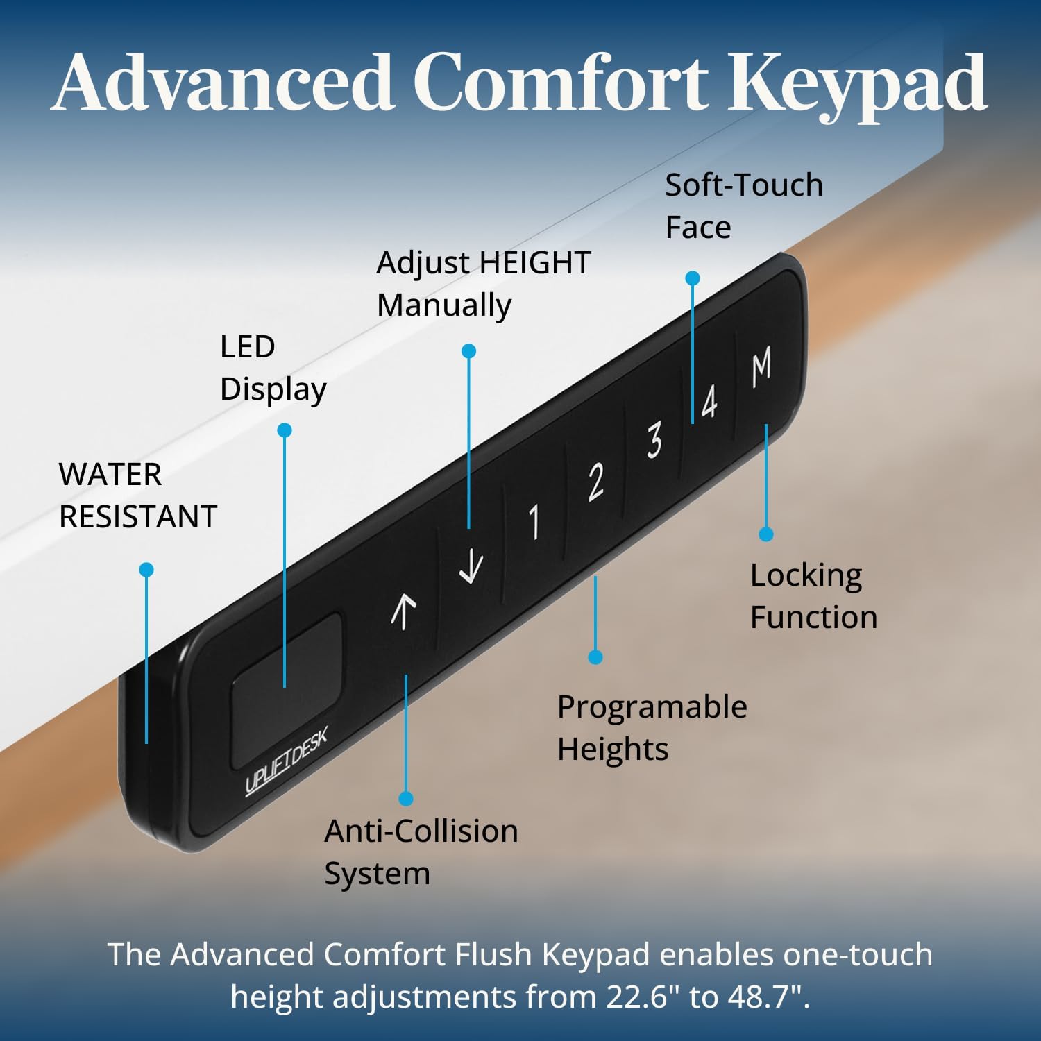 STURDY AND DURABLE CONSTRUCTION: The heavy-duty steel frame supports 355 lbs, ensuring rock-solid stability and long-lasting durability. A six-axis gyroscope sensor detects and prevents collisions, with adjustable sensitivity to protect your workspace.