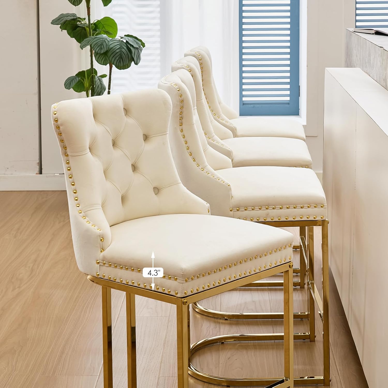 • Counter Height Bar Stools Set of 6, 26" Modern Barstools with Back, Velvet Upholstery Counter Chairs with Metal Legs for Kitchen Island, Bar, Counter, Beige