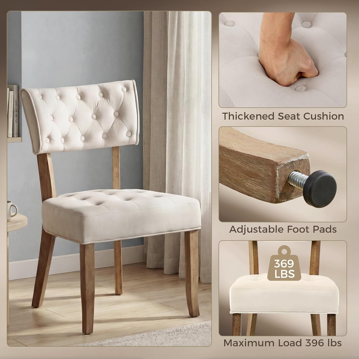 Wooden Dining Chairs Set of 4, Mid Century Tufted Upholstered Kitchen Chairs Dining Room Chairs, Velvet Farmhouse Dinner Chair for Kitchen Dining Room, Beige