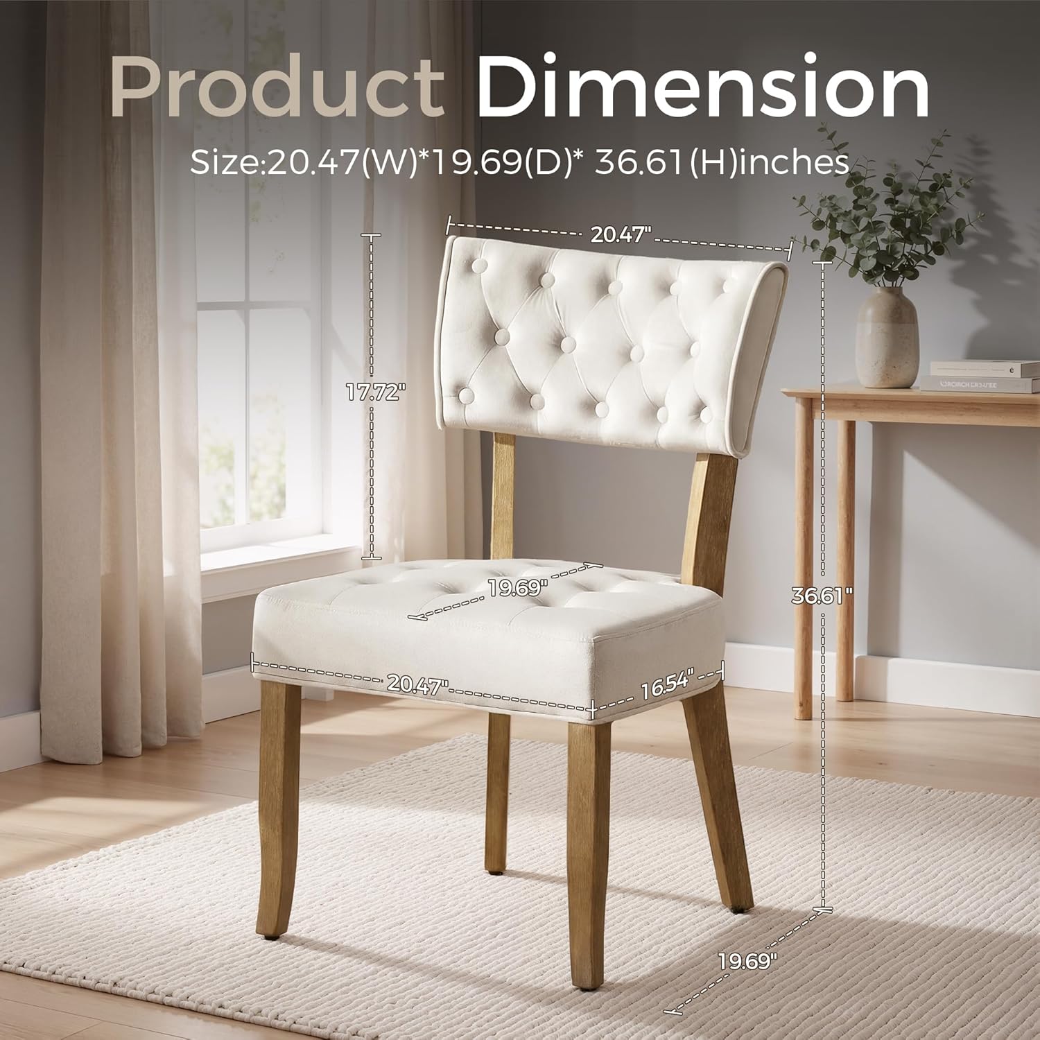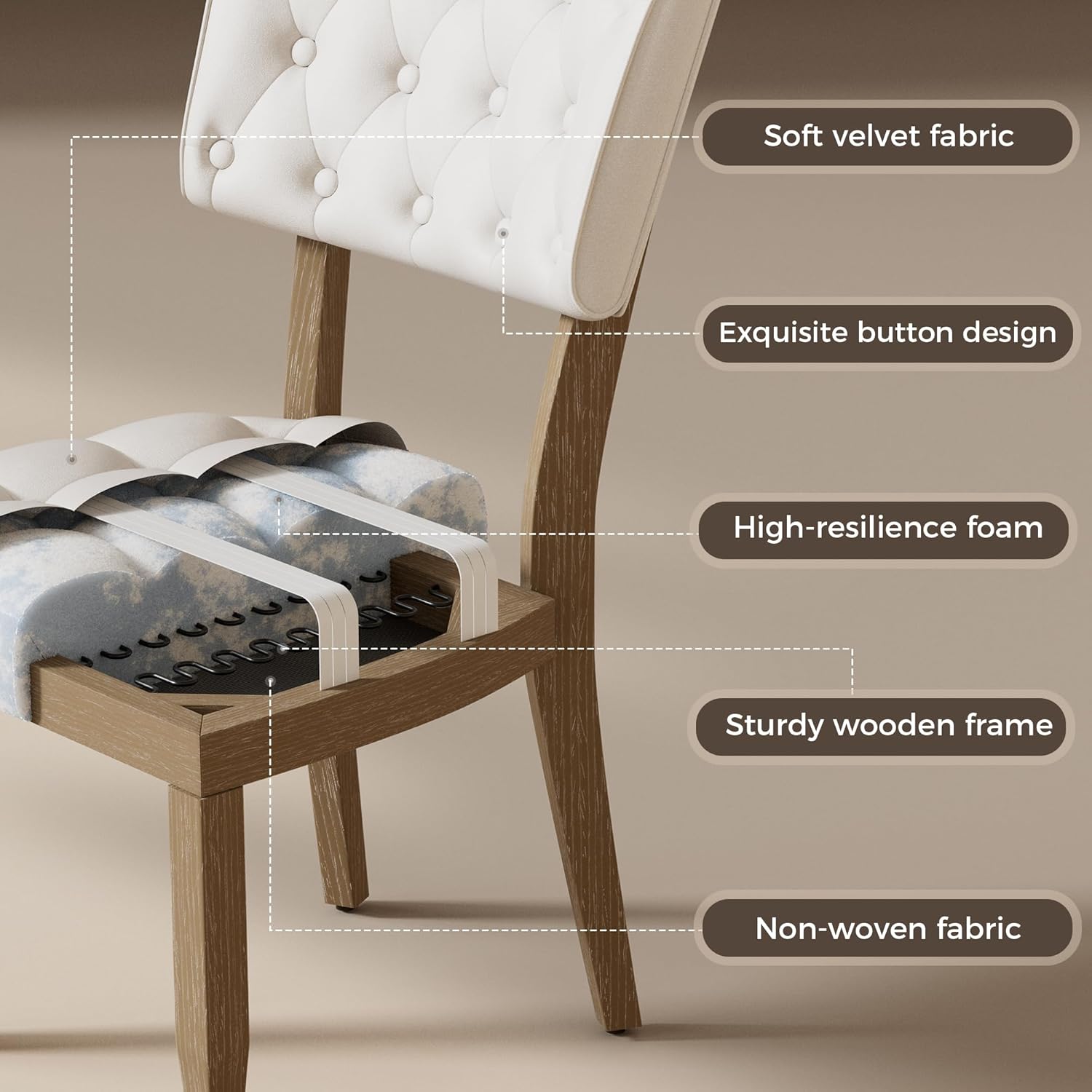 • Wooden Dining Chairs Set of 4, Mid Century Tufted Upholstered Kitchen Chairs Dining Room Chairs, Velvet Farmhouse Dinner Chair for Kitchen Dining Room, Beige