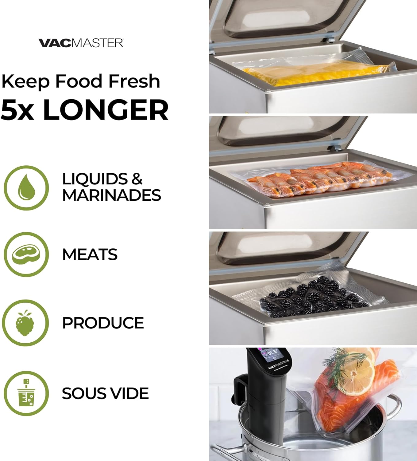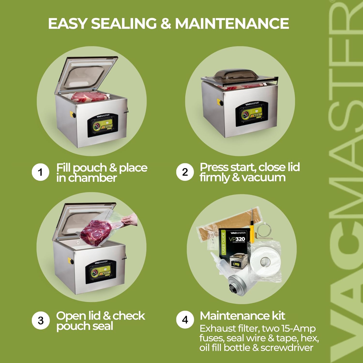 LEAK PROOF: With a 16" seal bar with double seal capability, the VP320 chamber vacuum sealer ensures no-leak storage, extending shelf life up to 5x longer than traditional storing methods.