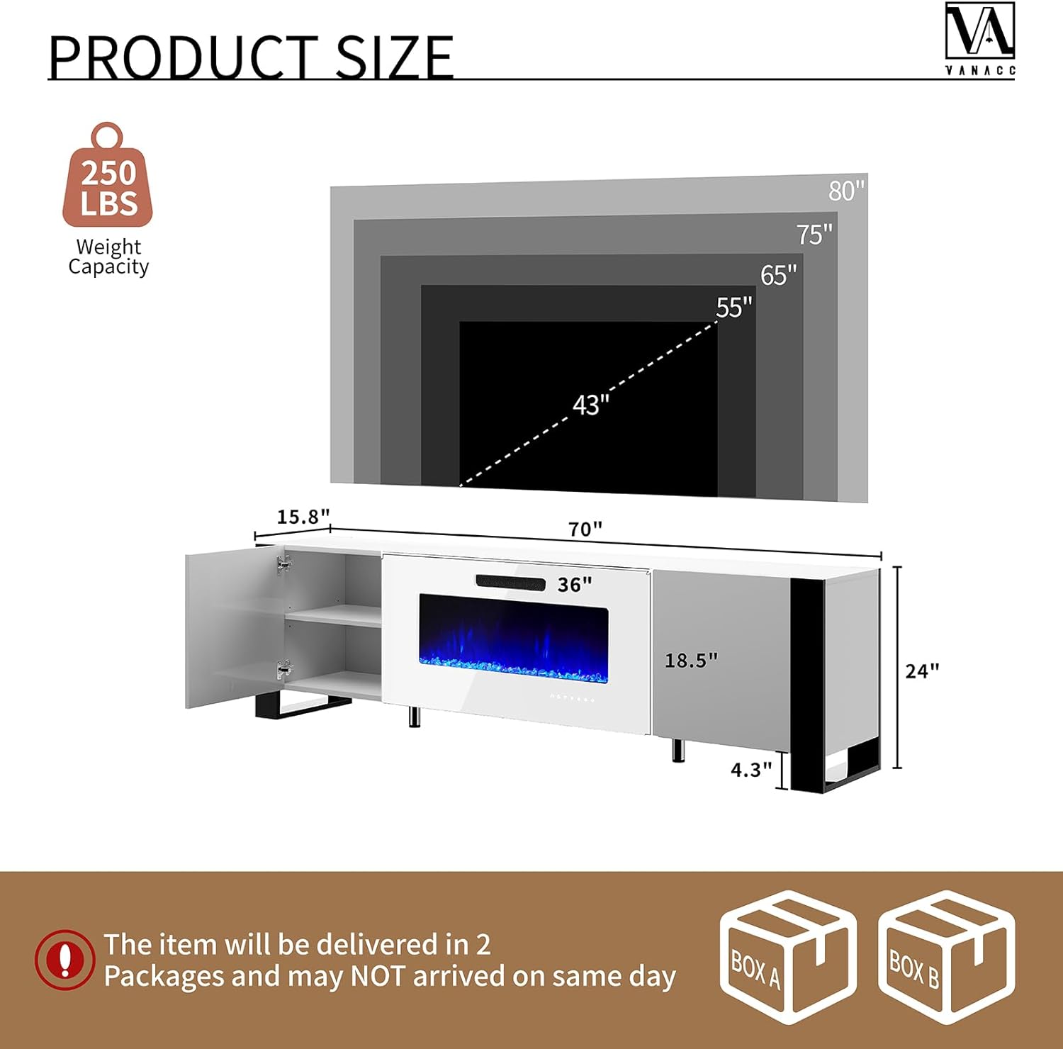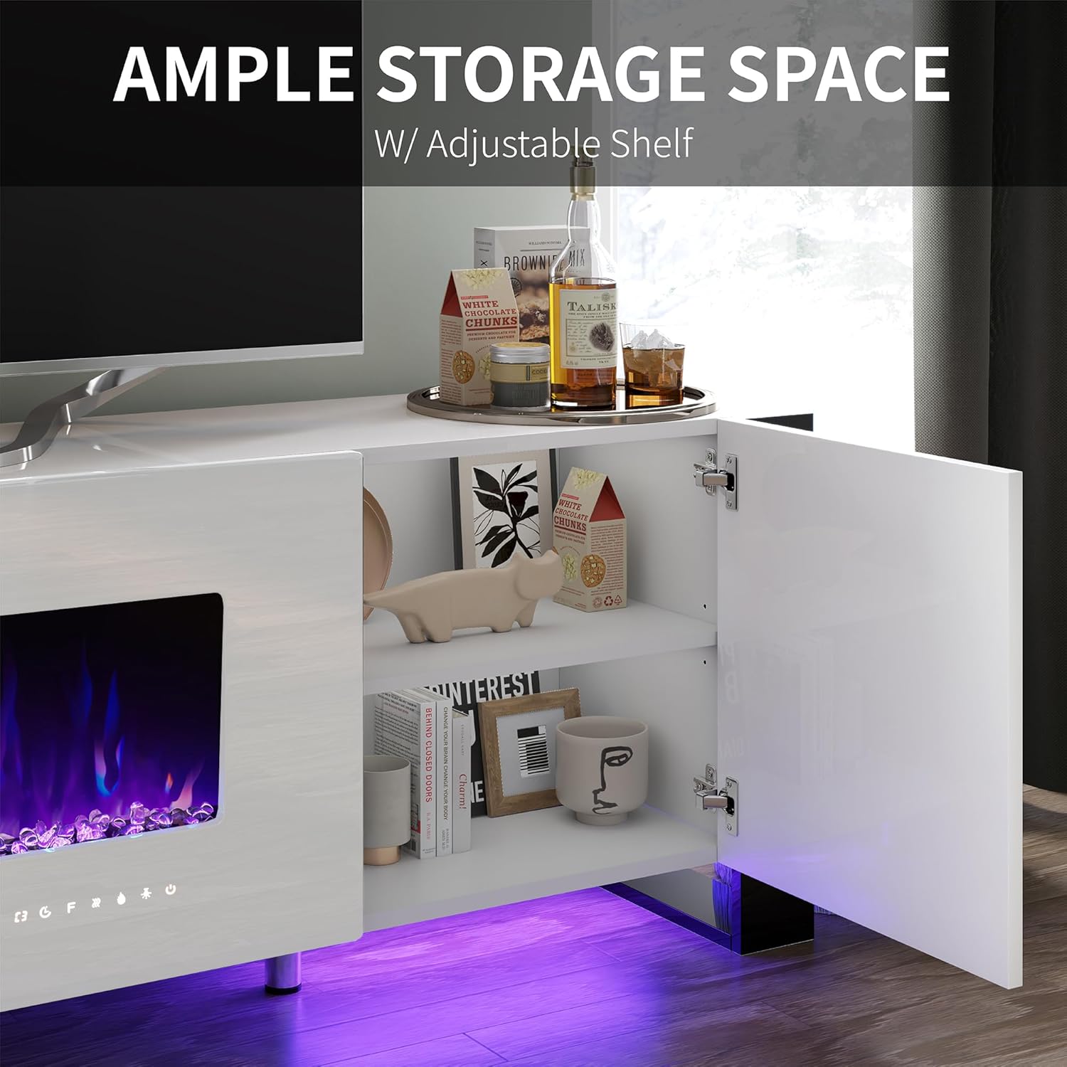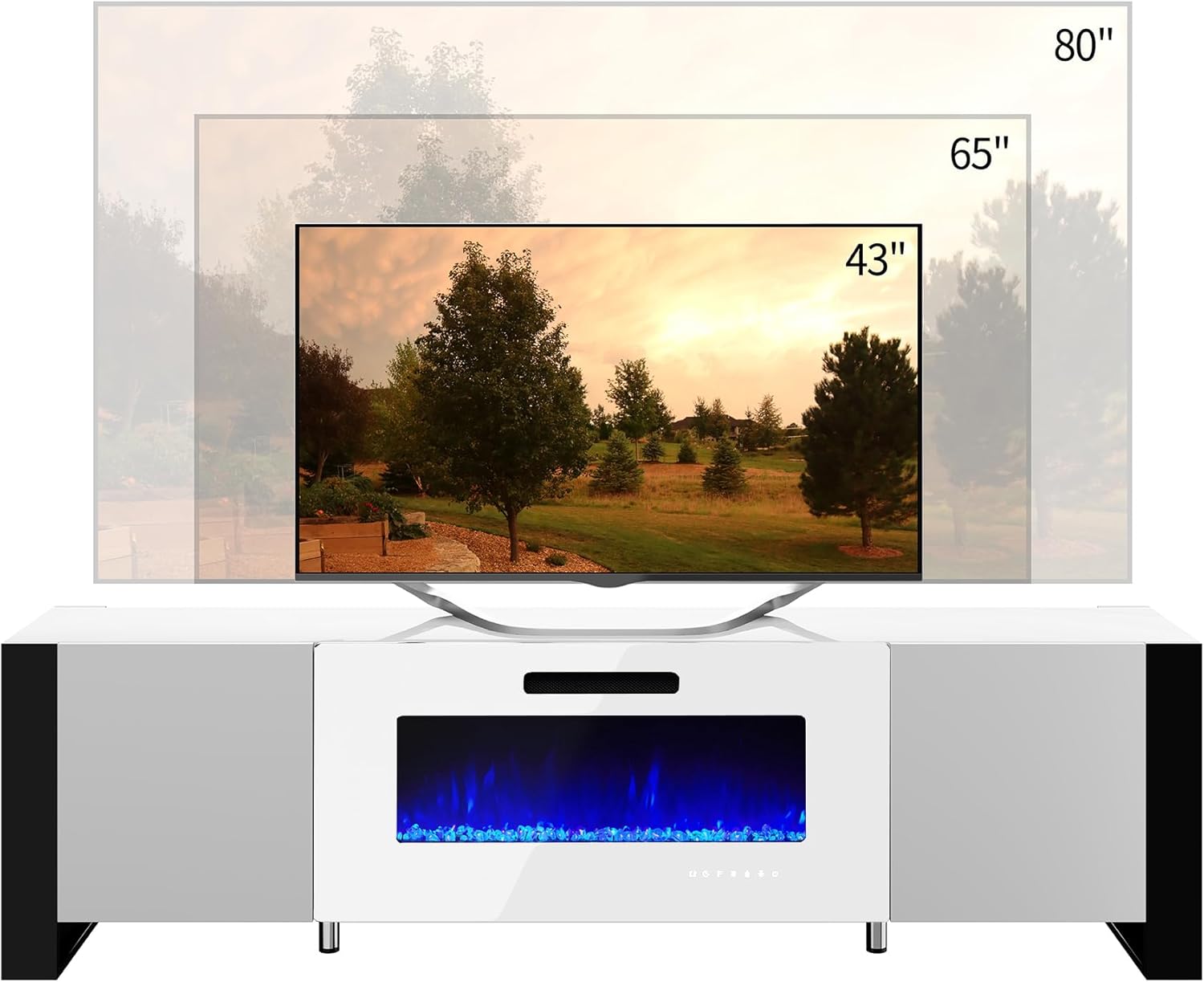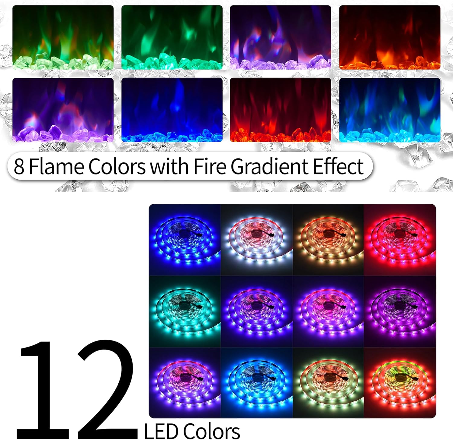 Realistic 36" Fireplace: Transform your space with our 36-inch fireplace, complete with lifelike crystal stones. Choose from 8 different flame colors with fire gradient effect and adjust the brightness across 5 levels to set the perfect ambiance. The LED light strip under the led TV stand has 12 adjustable colors.