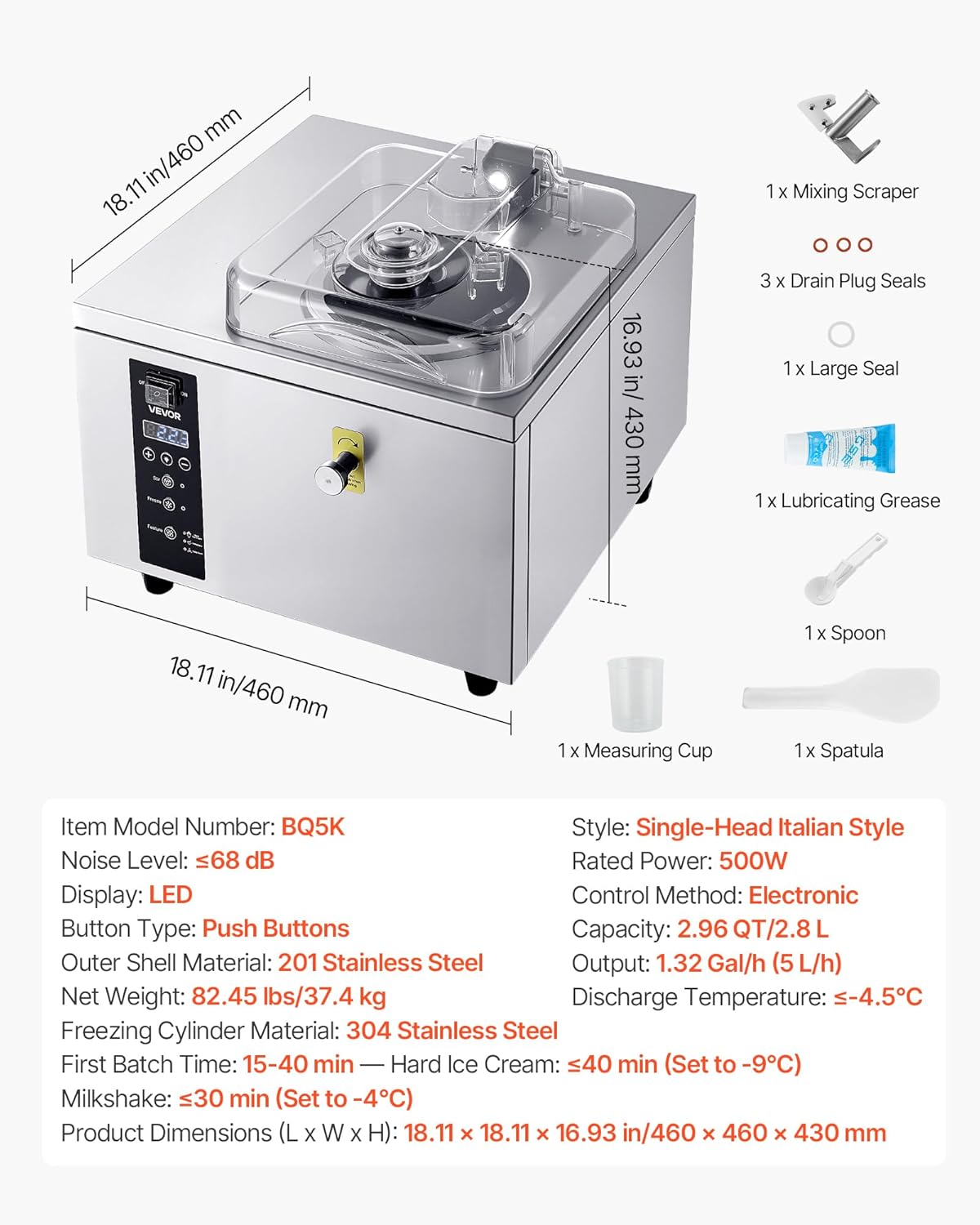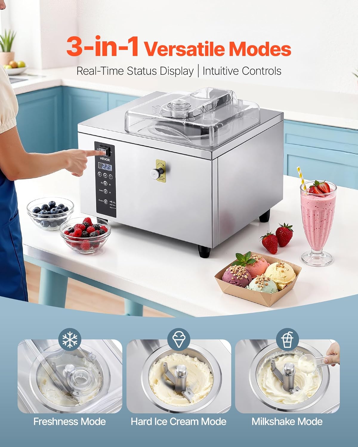 Smart Control: This commercial hard ice cream maker provides electronic controls for mixing, freezing, hard ice cream, milkshake, and storage. Easily set the timer and monitor real-time status on the clear display for reliable, consistent results