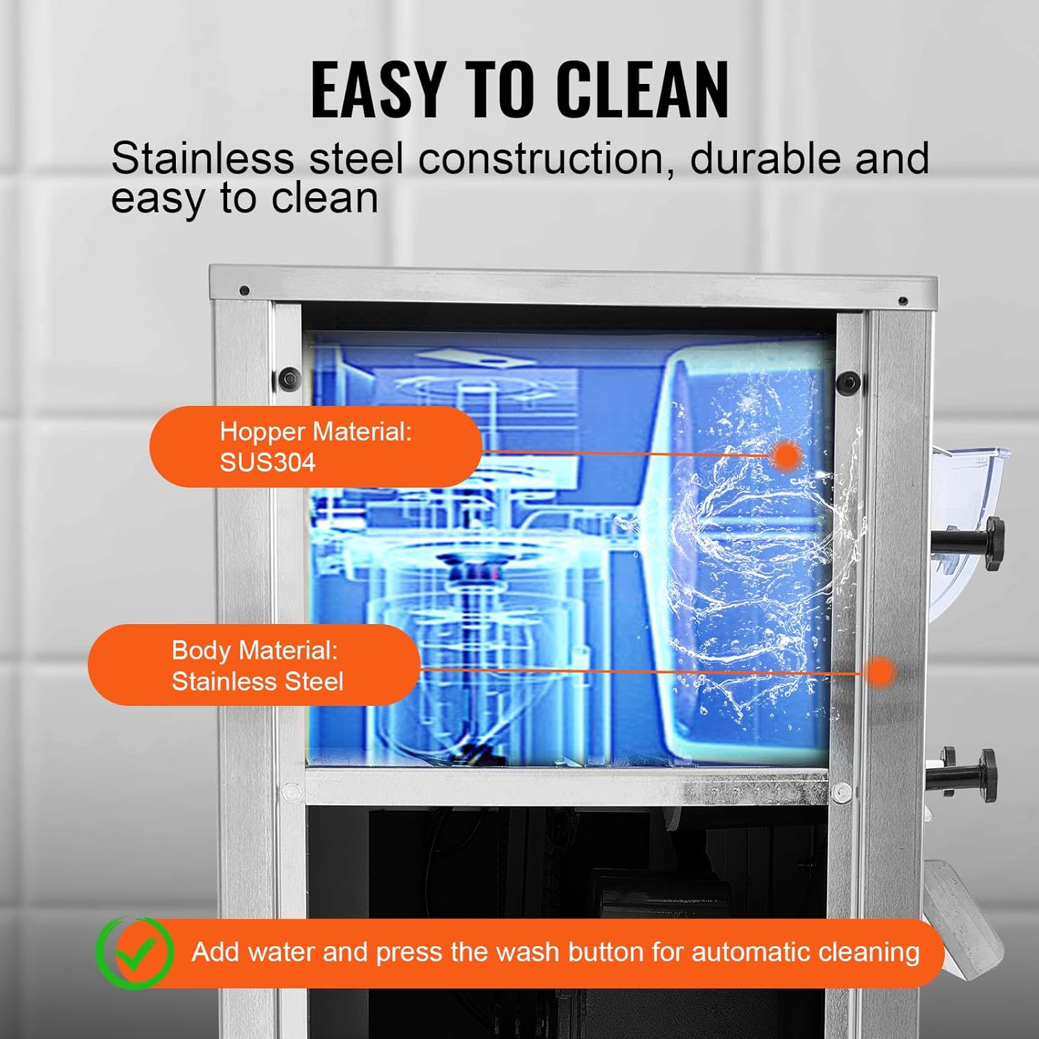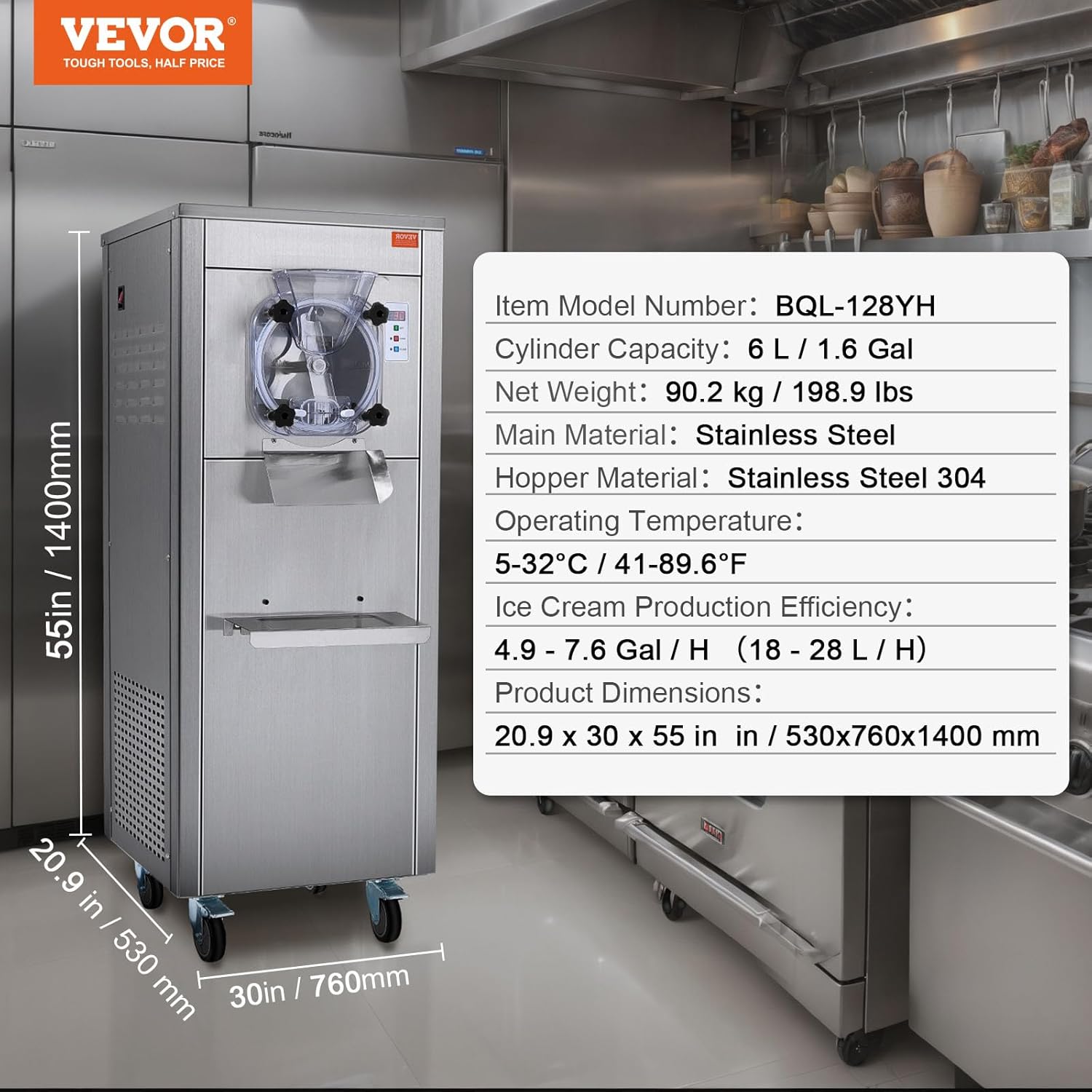 Solid and Durable: Constructed with high-quality SUS201 stainless steel and featuring a food-grade SUS304 stainless steel refrigeration cylinder, the hard serve commercial ice cream maker is sturdy, rust-resistant, and easy to clean, ensuring longevity and food safety.