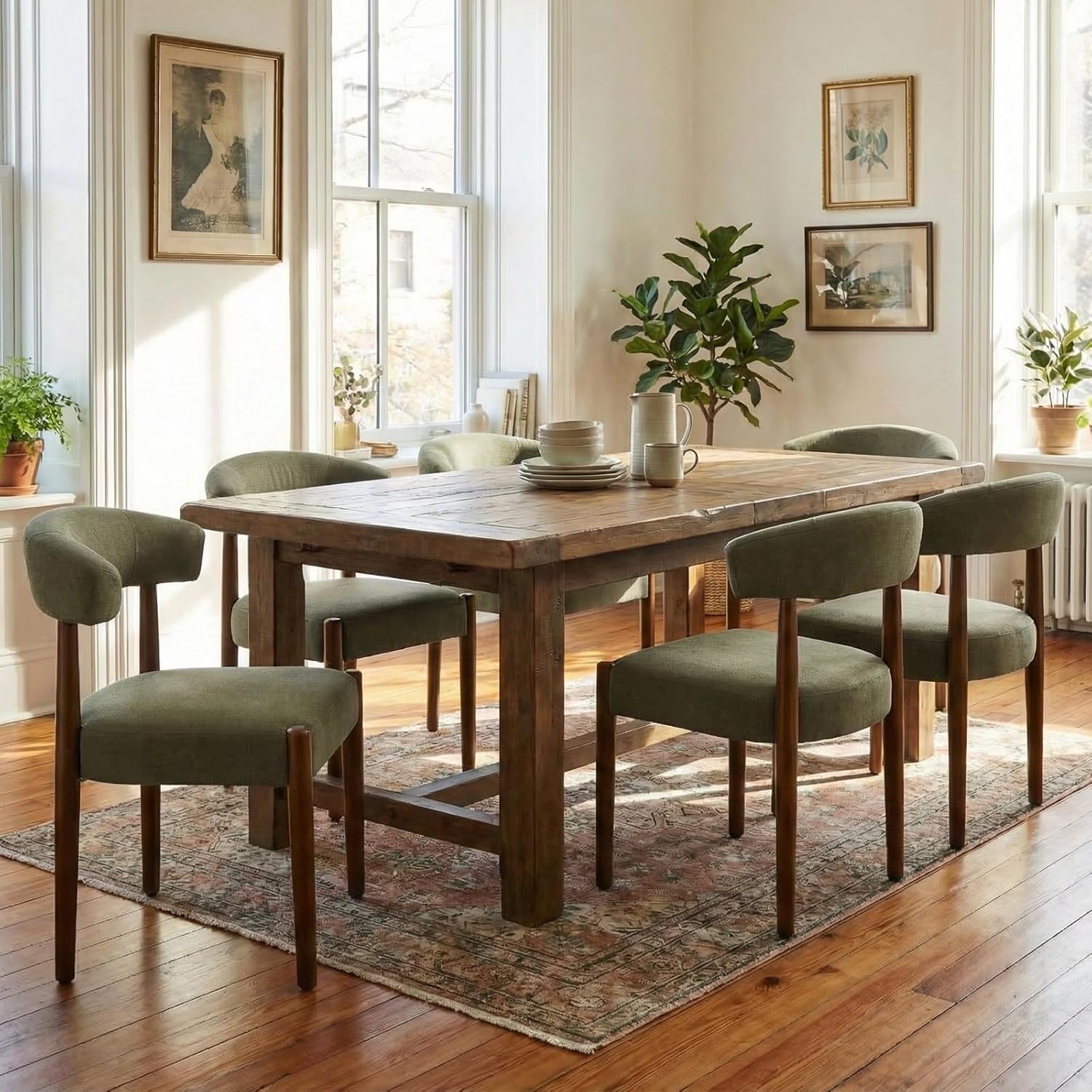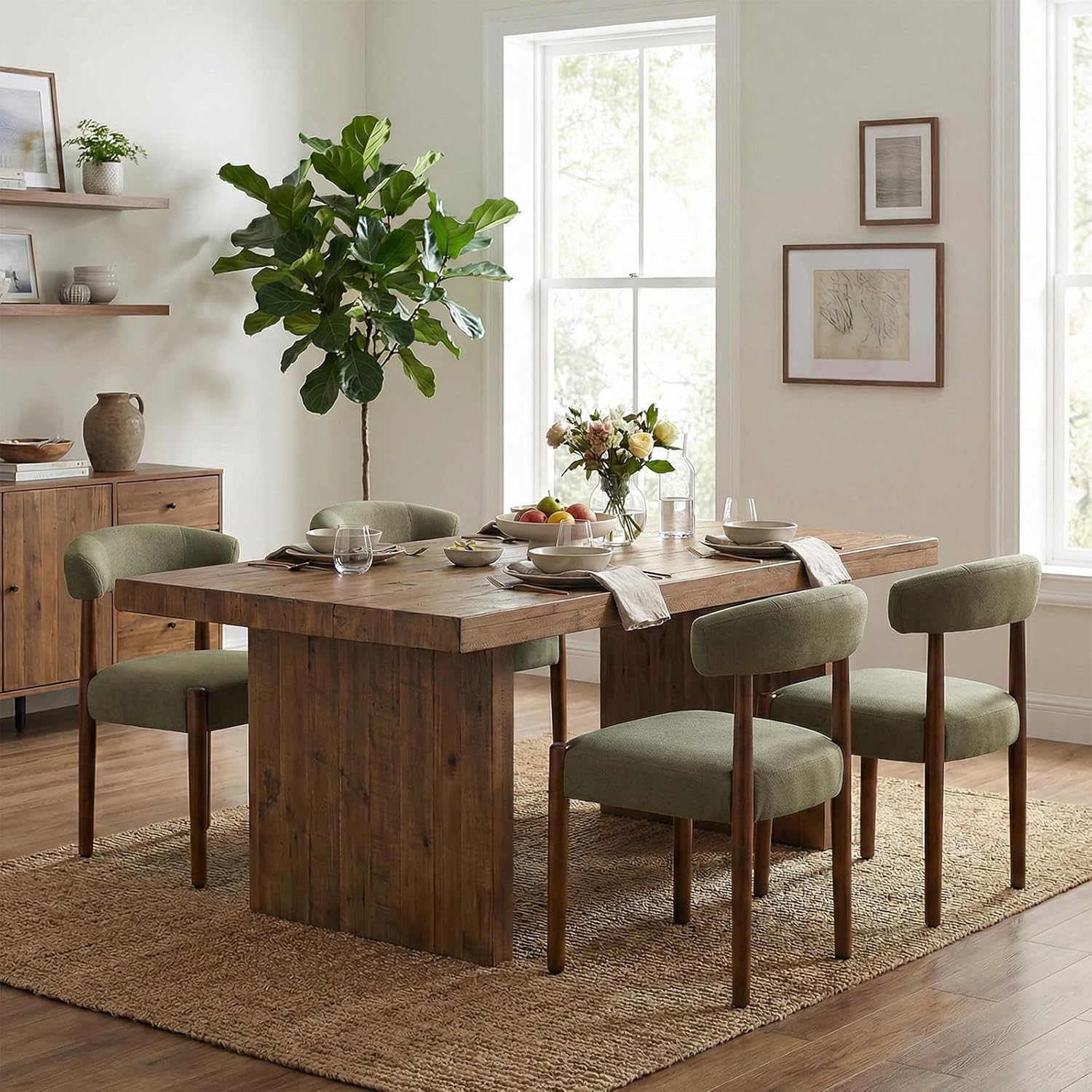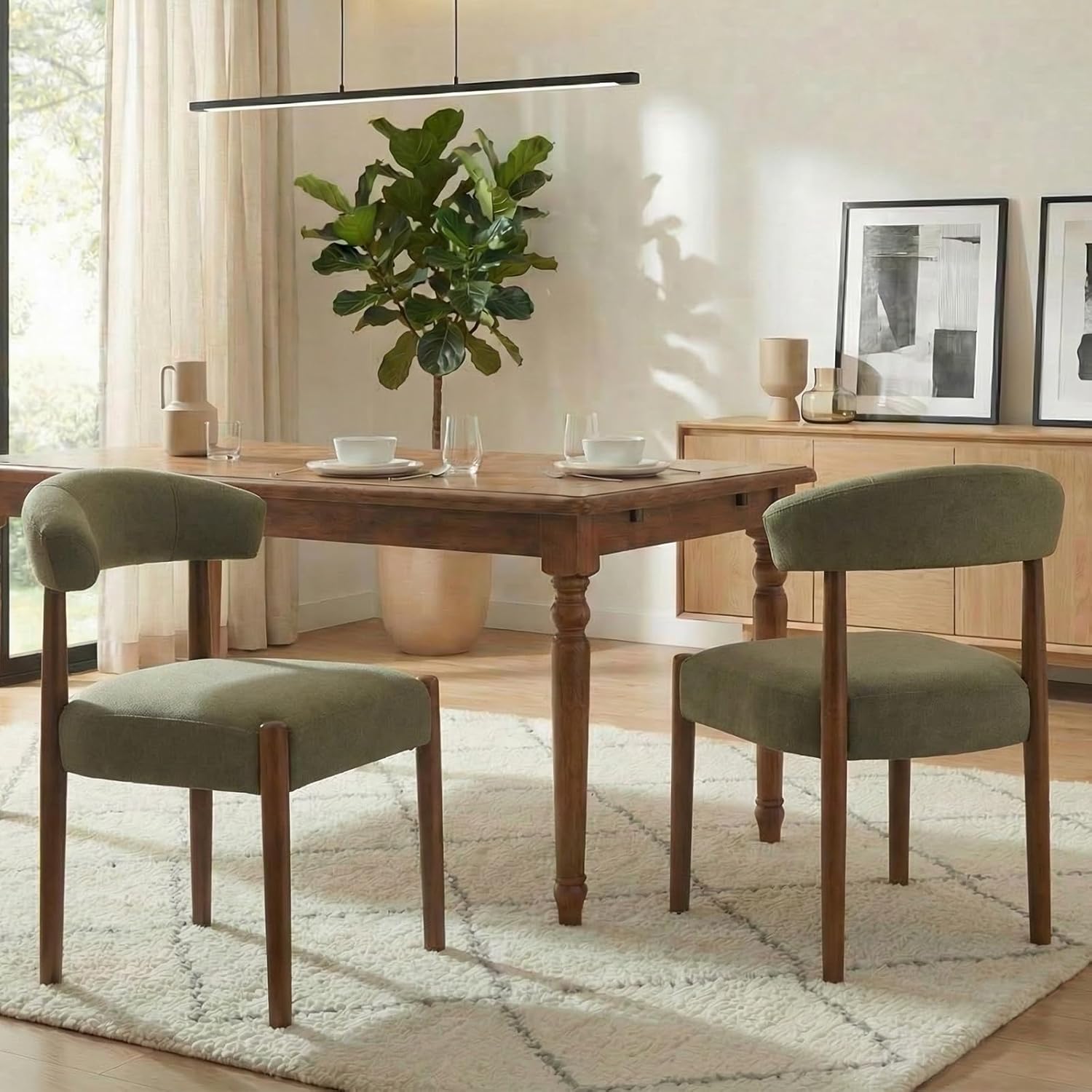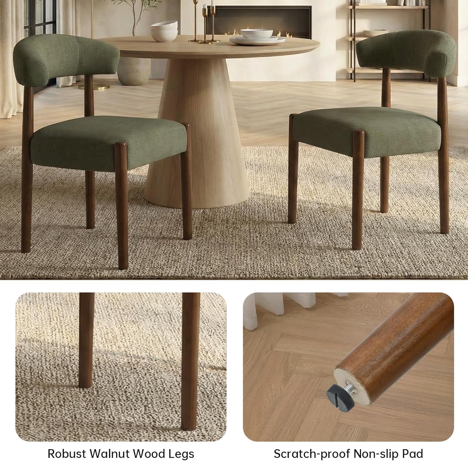 Walnut Wood Legs: The modern dining chairs are featuring robust and stylish walnut wood legs which can offer better support and stability, these kitchen chairs bring a touch of understated elegance to your space. The walnut wood grain pairs beautifully with the upholstered seat and back which is suitable for your decoration style.