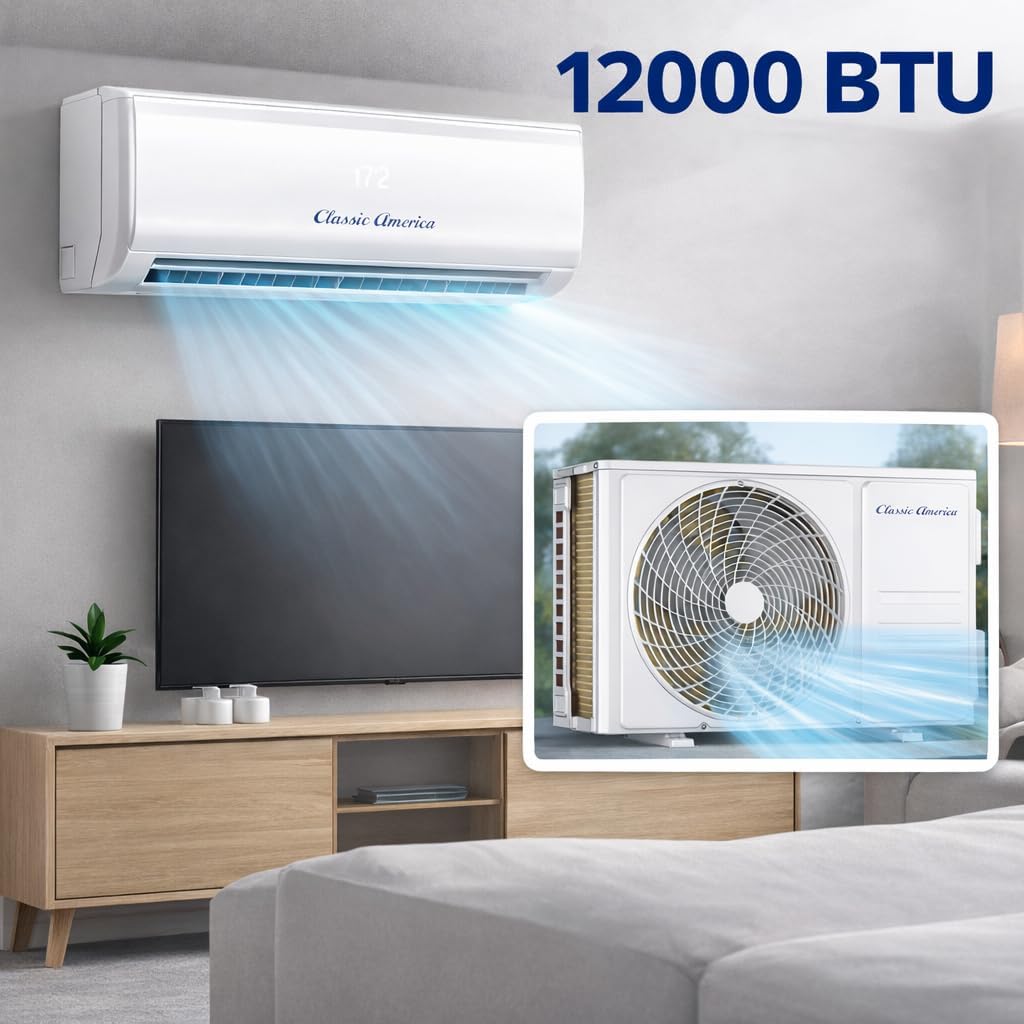 SUPERIOR PERFORMANCE HEAT PUMP: Delivers 12,000 BTU/hour heating and cooling capacity with industry-leading 19 SEER2 rating and 8.5 HSPF2 efficiency. Ideal coverage for spaces up to 550 square feet.