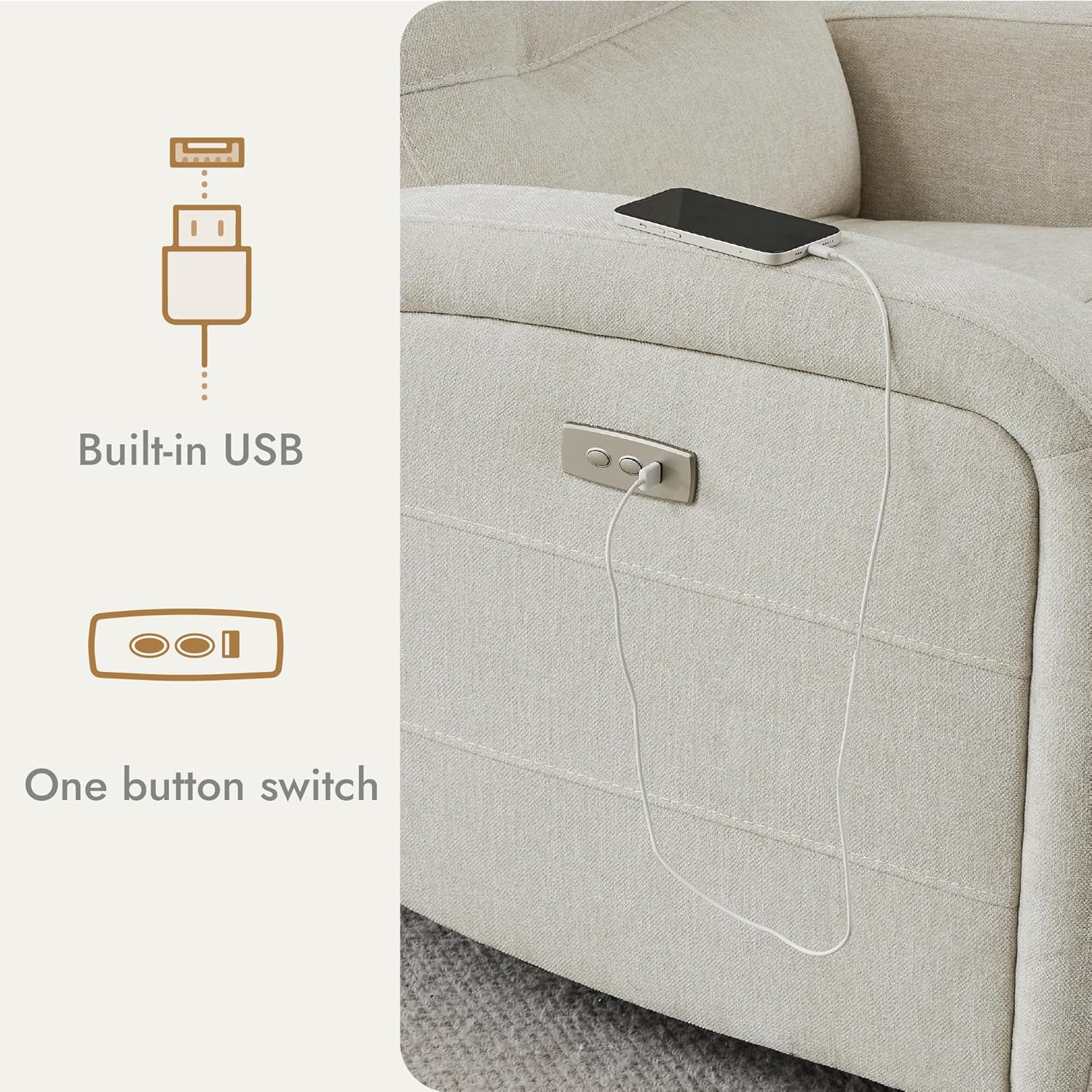 Built-in Charging Ports: Equipped with the charge port, reclining chair is convenient to charge your phone