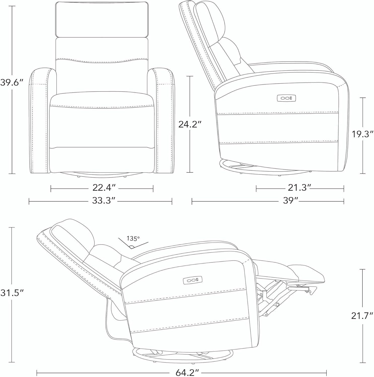 Power Swivel Glider Rocker Recliner Chair: Pressing two-button easily activates the reclining function with smooth and gentle motion. Recliner featurs 270 swivel, glide, rock and 90-135 reclining angles so you can always find the most comfortable position whether you're reading, working or gaming