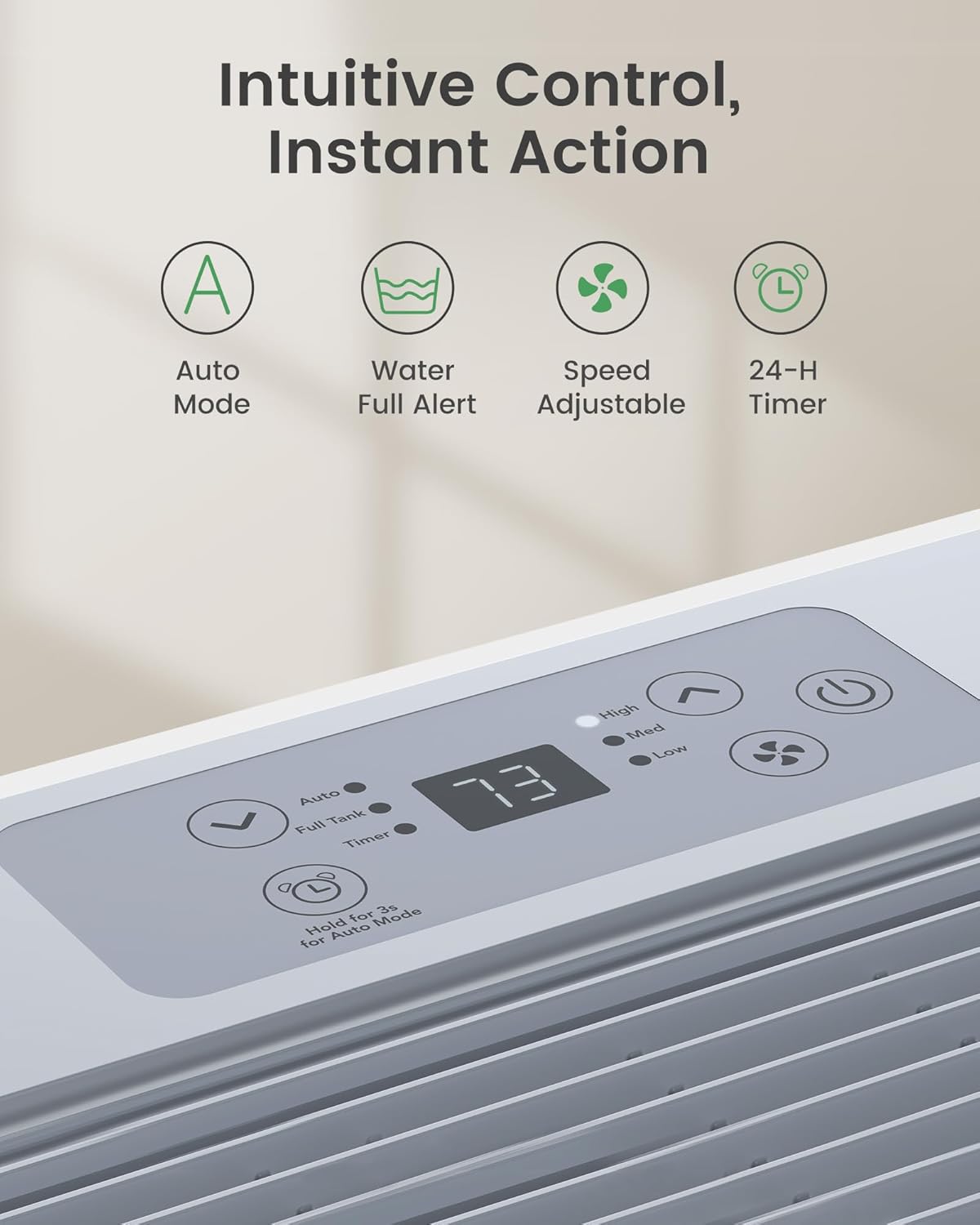 Wider Humidity Range & Smart TimerEnjoy precise control with a 3080% adjustable humidity rangebroader than many models that only reach 40%, making it ideal like closets, basements, or utility rooms where moisture tends to build up. The 24-hour timer lets you set it to run when needed, helping you save energy without the hassle.