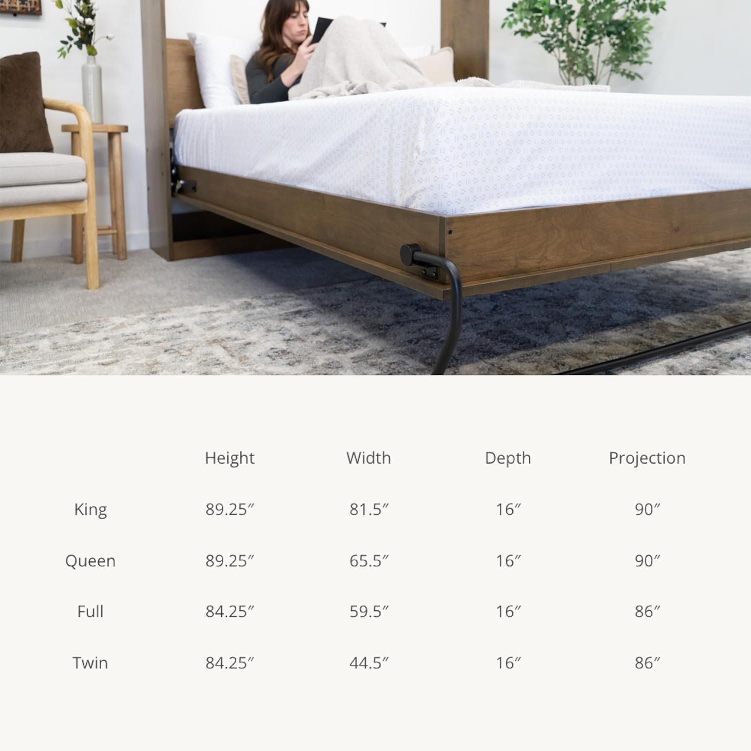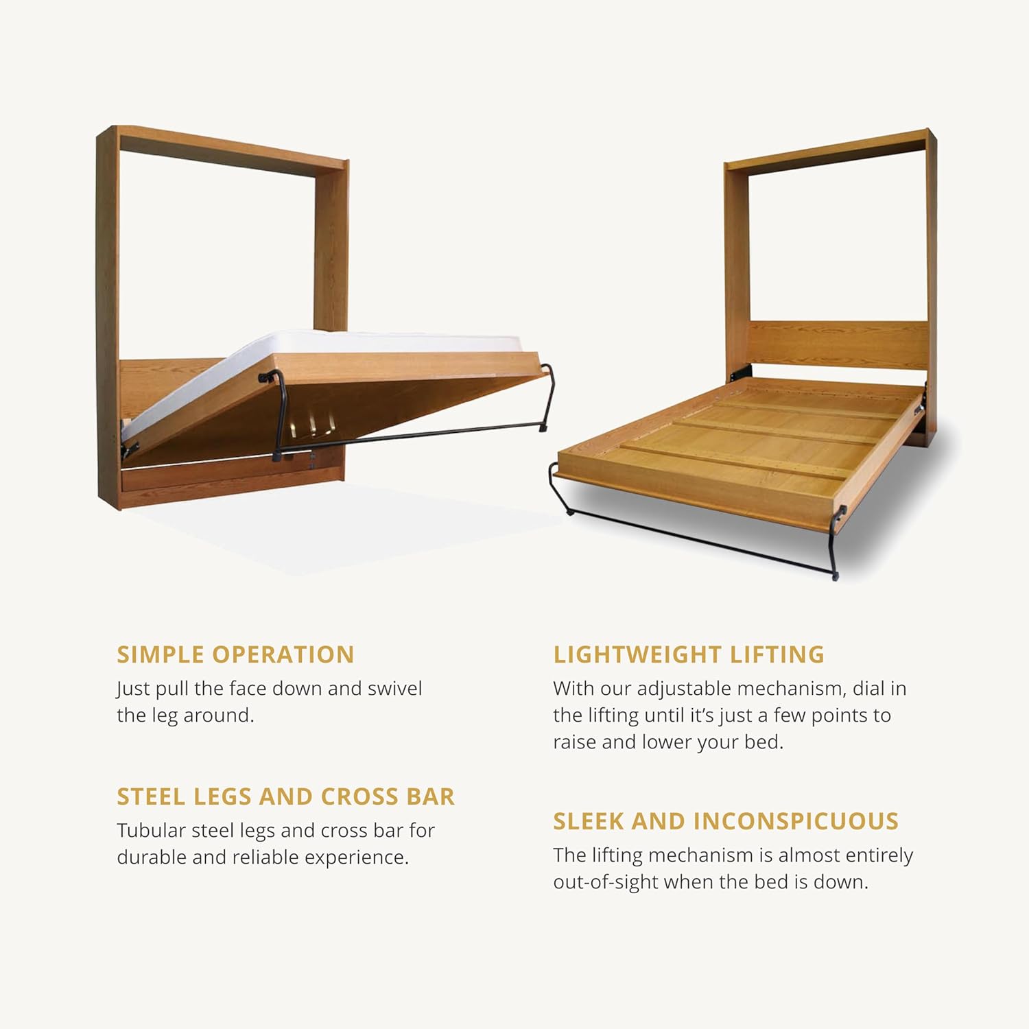 Available in All Standard Bed Sizes: Whether you have a twin, full, queen, or king bed, our universal mechanism is designated to fit them all. Enjoy the flexibility of adapting your Murphy bed to your preferred mattress size.