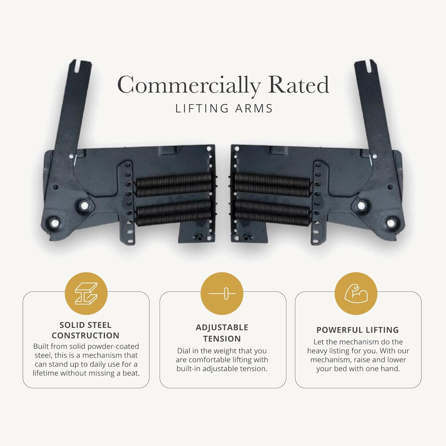Durable & Reliable: Our high-quality spring lift mechanisms are known for their durability and long lifespan, designed to withstand frequent use without losing their effectiveness. Their reliability ensures that the bed remains functional for years to come with built-in safety features such as locking mechanisms that keep the bed securely in place when raised or lowered.