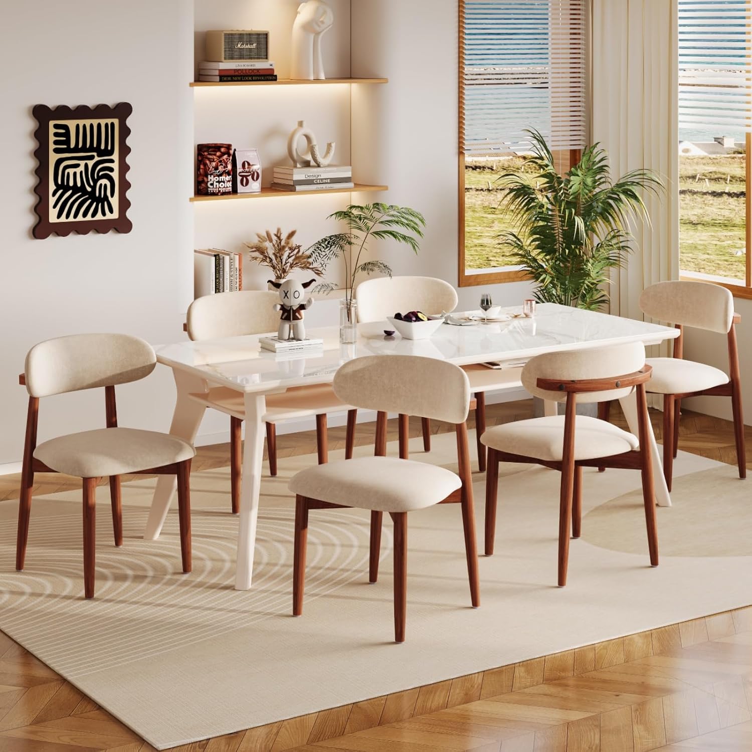 Room Chair:The backrest of this mid-century modern dining chair adopts an ergonomic arc design. The high-density sponge backrest and breathable semi-wrapped backrest can better fit your back and provide support, effectively relieving back fatigue.