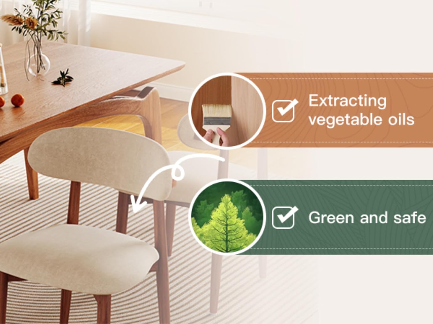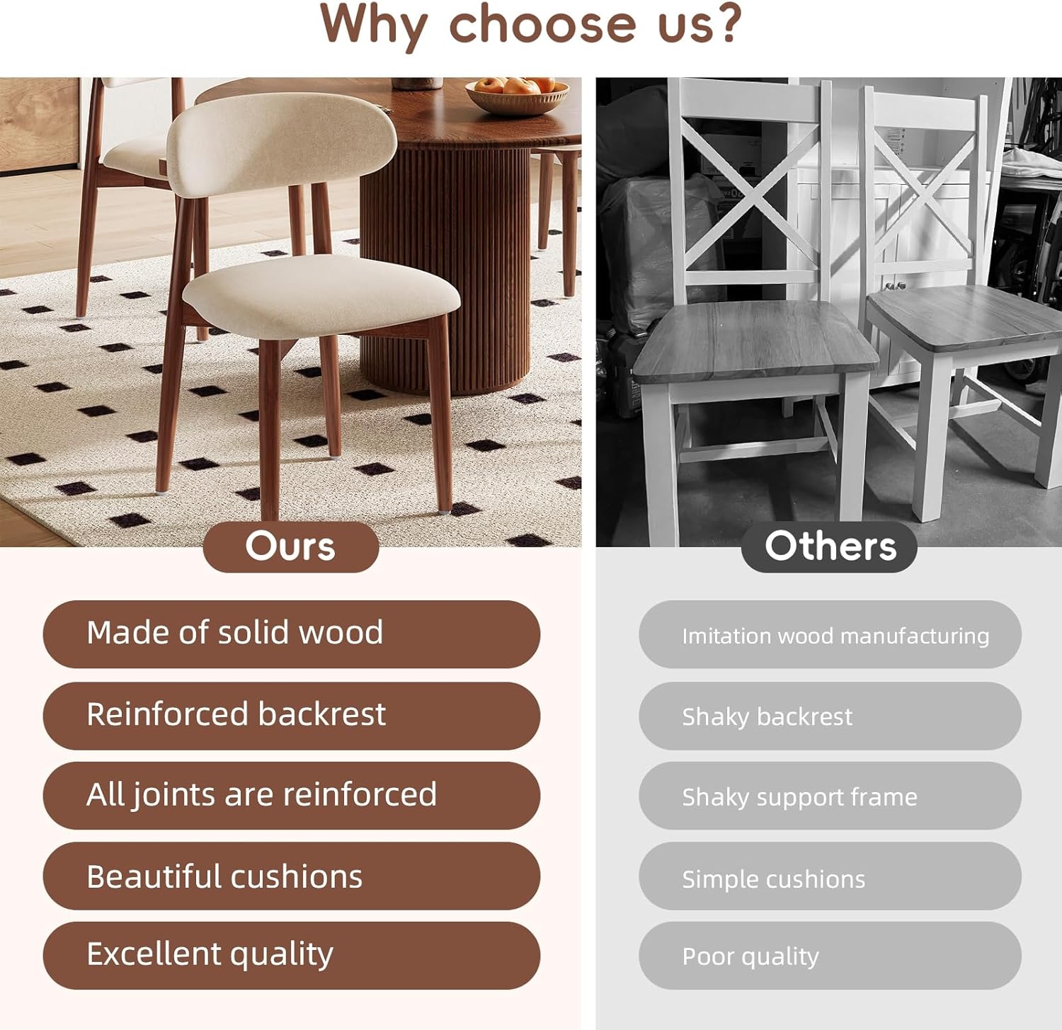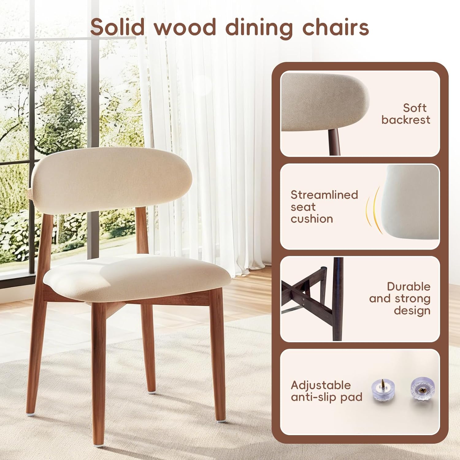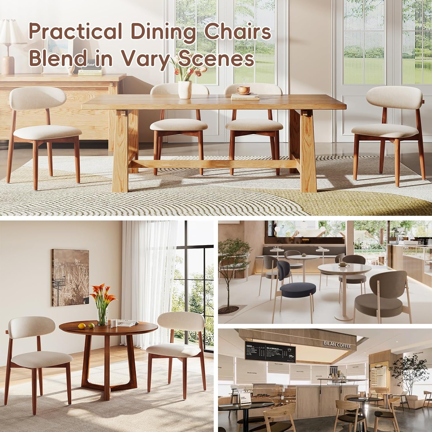 Rustic Dining Chairs: This dining chair set is made of high-quality rubber wood and is the first choice for modern, stylish and comfortable dining tables. The wooden chair legs are elegant and exquisite, making them ideal for home and business places. The padding and support of the dining chair ensure that guests feel comfortable when dining or at events.