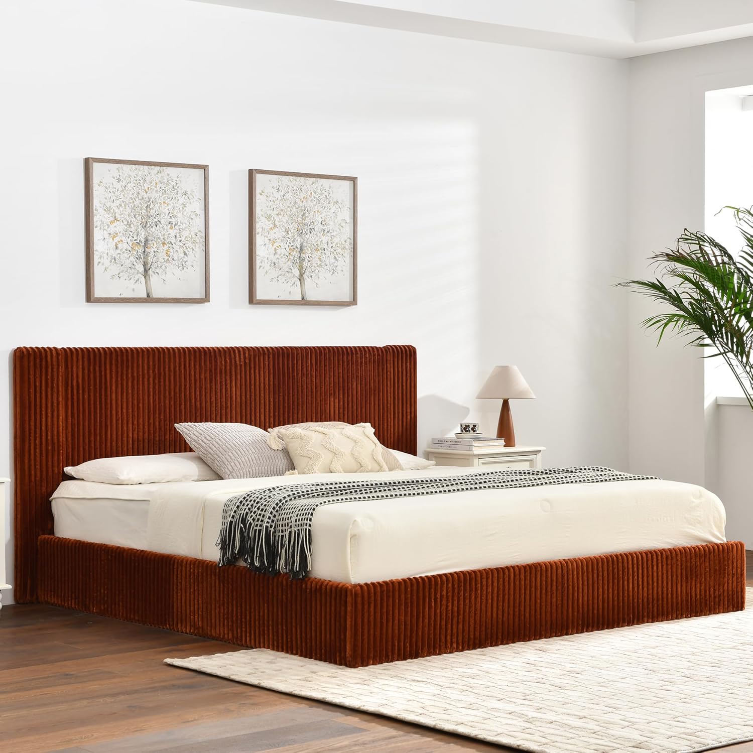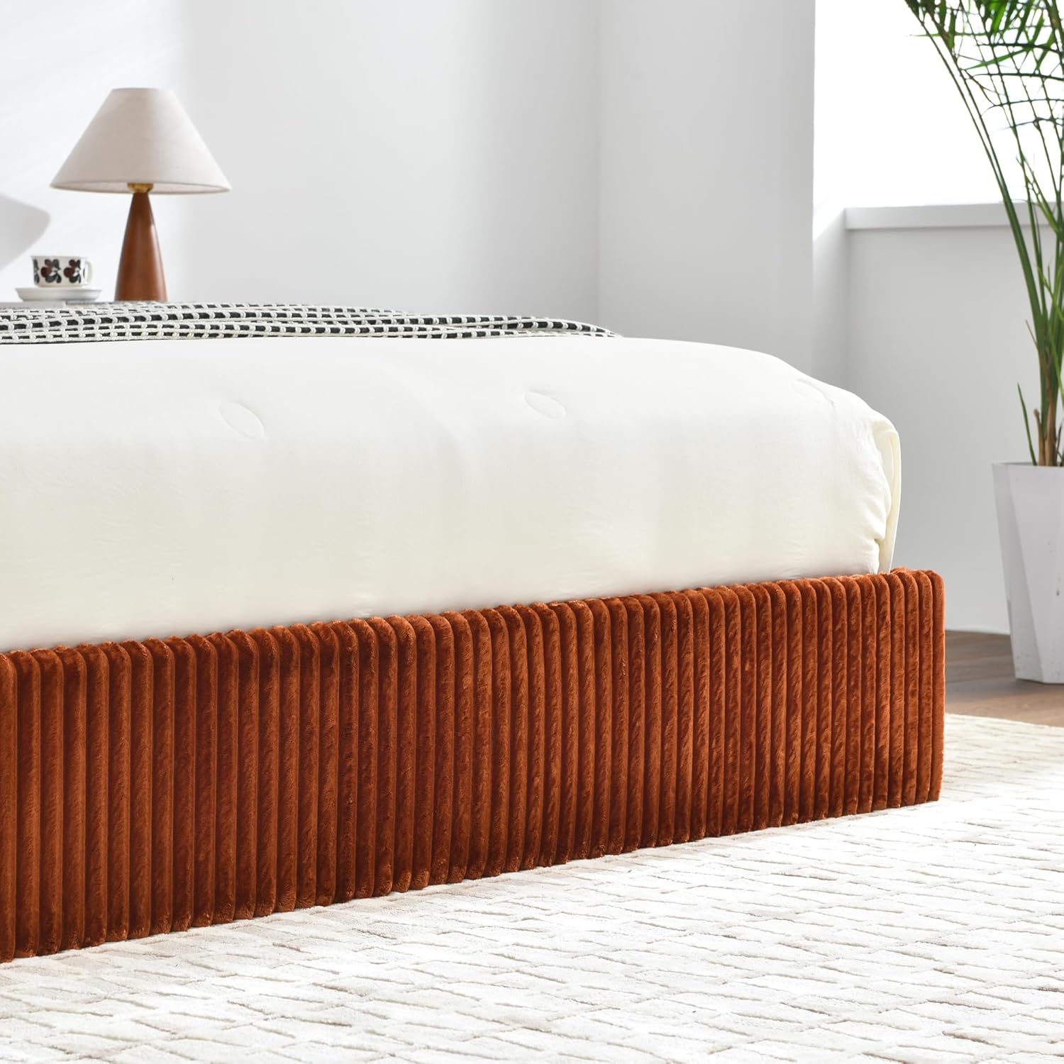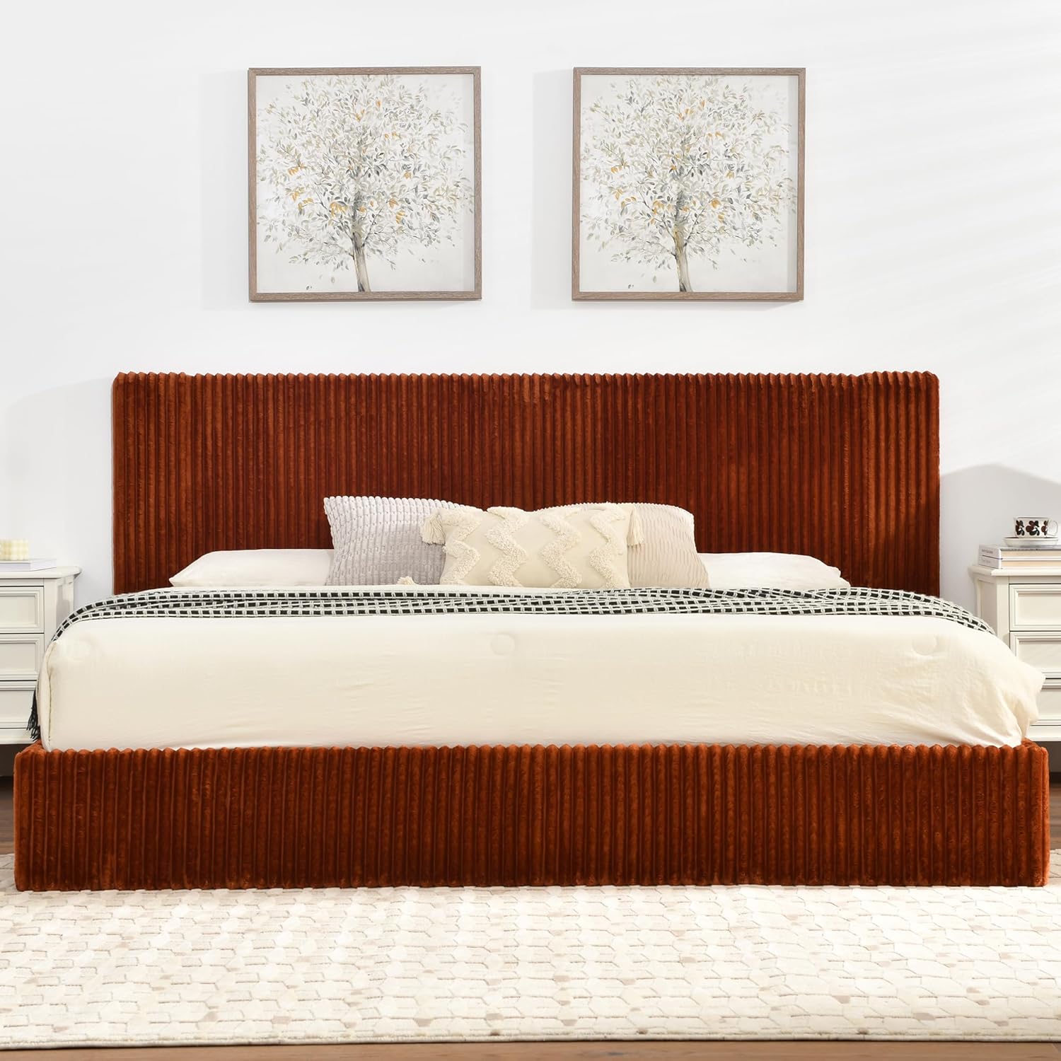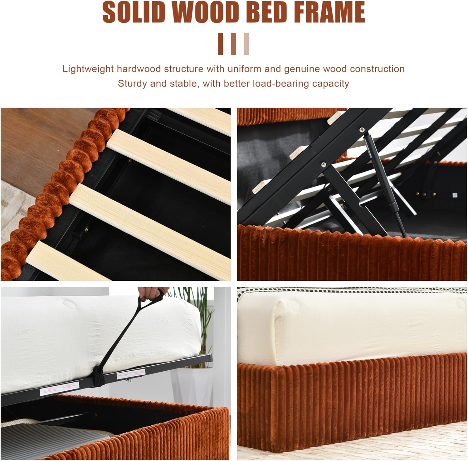 STABLE STRUCTUREBed frame is sturdy with strong load-bearing capacity, high-quality metal frame, center support leg and matching wooden slats, which enhances stability and helps to support the mattress stably, extending the life of the mattress. Ensure that long-term use is not easy to deformation, shaking, to protect the safety and stability of sleep.
