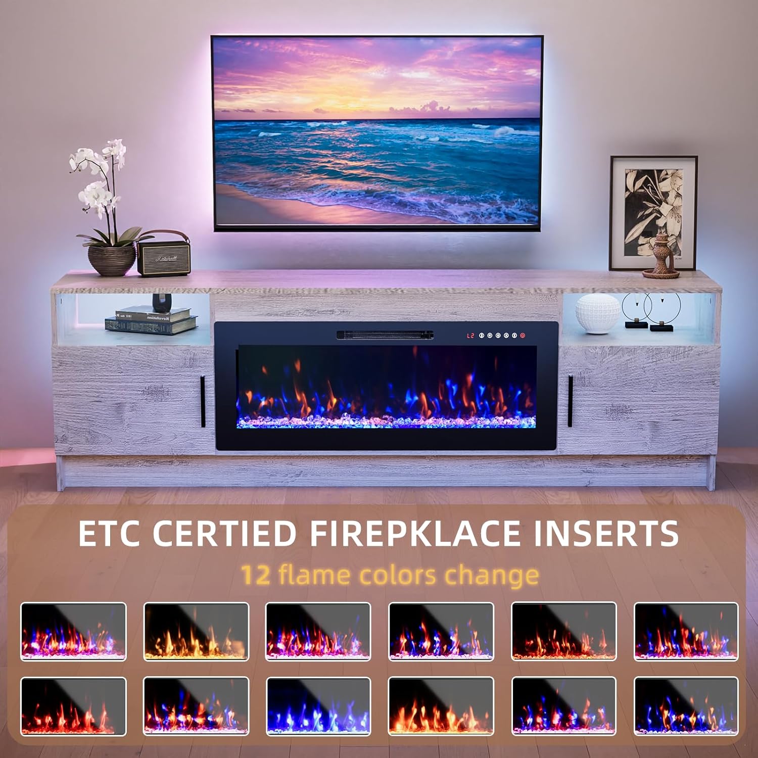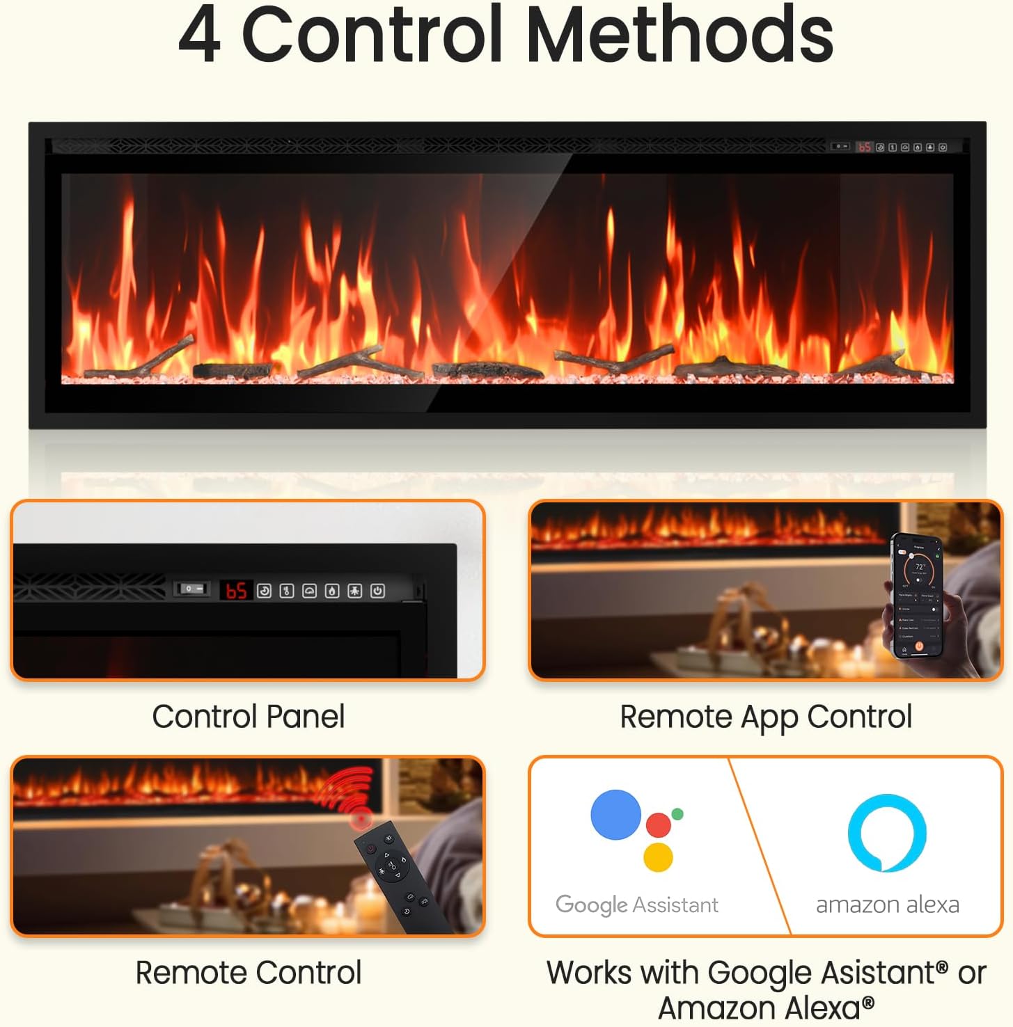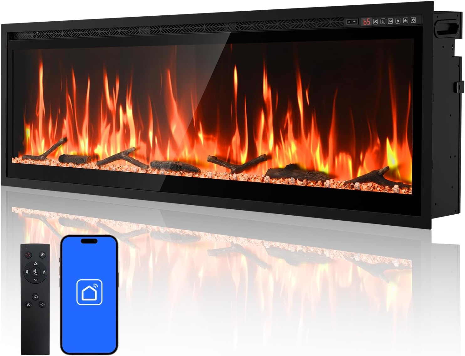 60 Inch WiFi Electric Fireplace Heater, Recessed or Wall Mounted, UltraSlim 5.51" Deep, 750/1500W, 12 Flame Colors & 12 Ember Bed Colors,Remote & App Control, Works with Alexa & Google Home