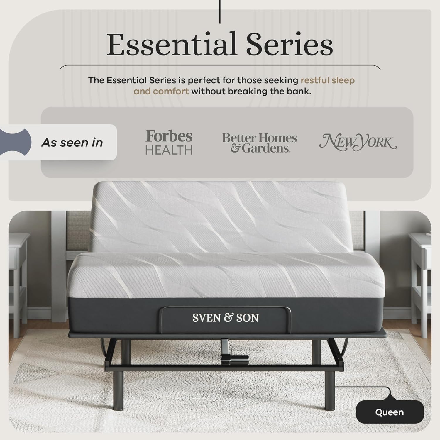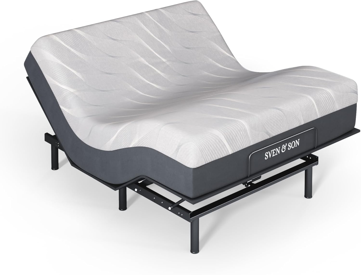 Sven and Son Essential Adjustable Bed Base (Frame) + 14 inch Hybrid Spring Matt (Medium Soft), Easy Assembly, Head and Foot Lift, Memory Positions, Zero Gravity, Wireless Remote - Queen