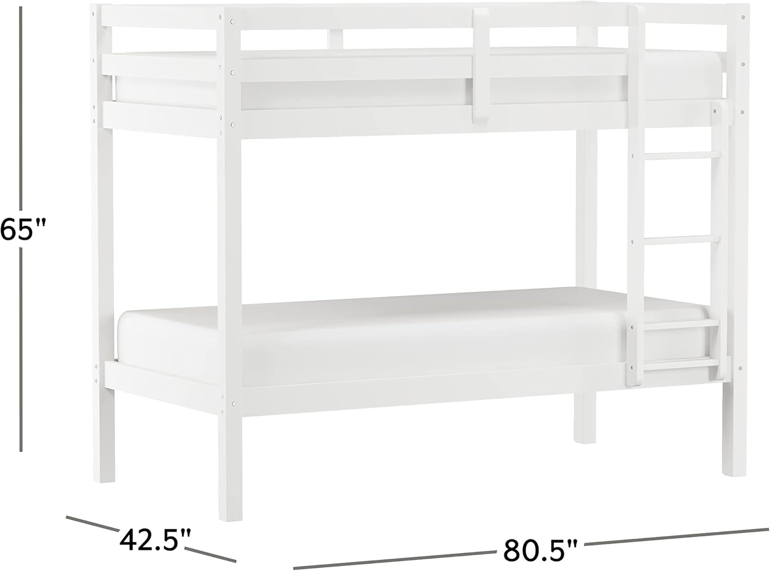 Kids and Teens Caspian Twin Bunk Bed, Twin/Twin, White