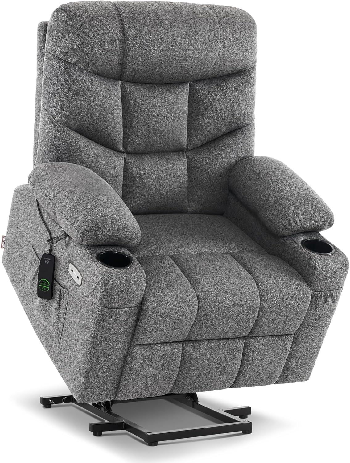 Power Lift Recliner Chair with Extended Footrest for Elderly People, Fabric 7287/7087 (Dark Gray, Medium)