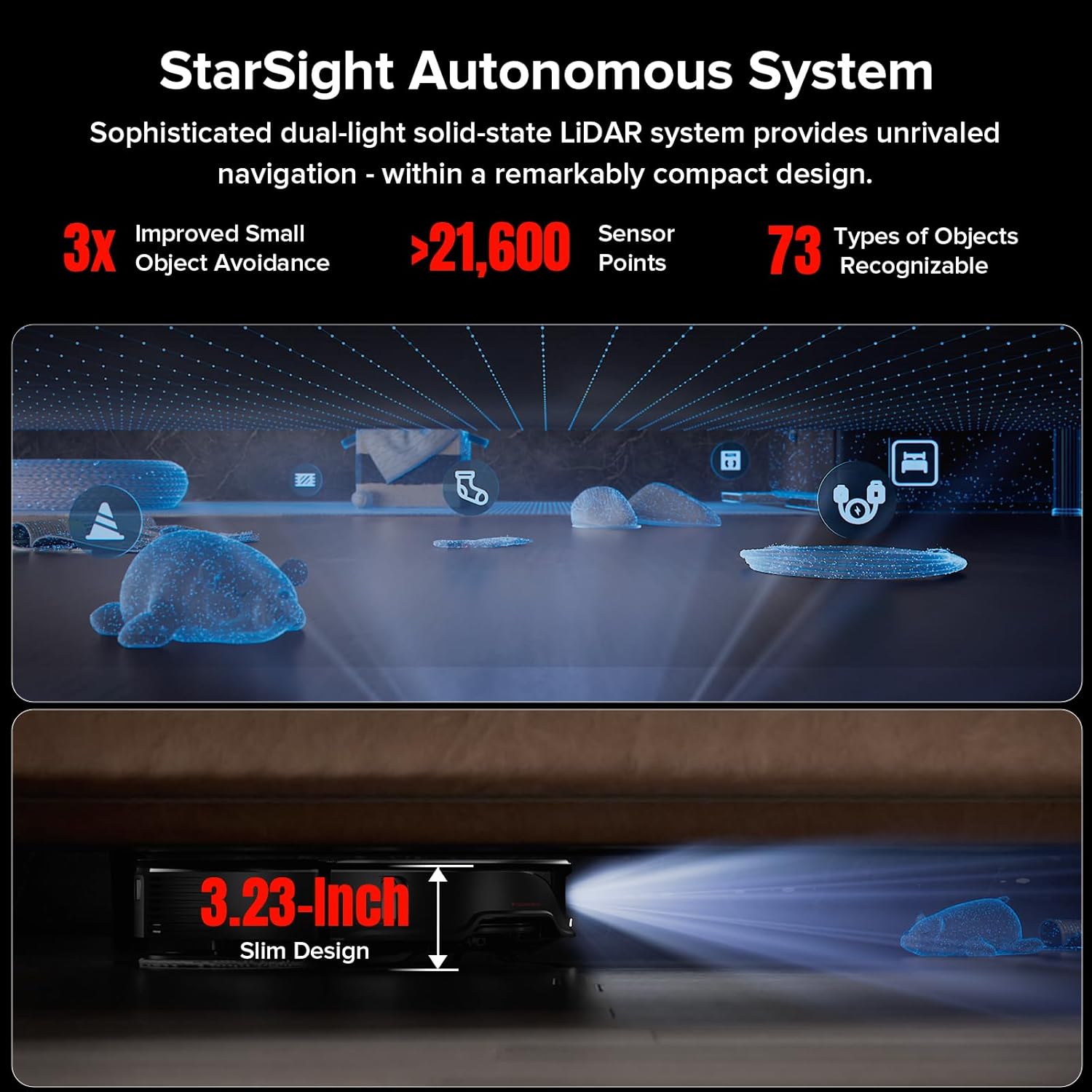 Saros 10R Robot Vacuum and Mop, 22,000 Pa Suction, Zero-Tangling, 3.14 Ultra Slim, FlexiArm Riser Technology for Carpet & Floor, Corner & Edge Cleaning, Self-Emptying, Hot Air Drying, Black