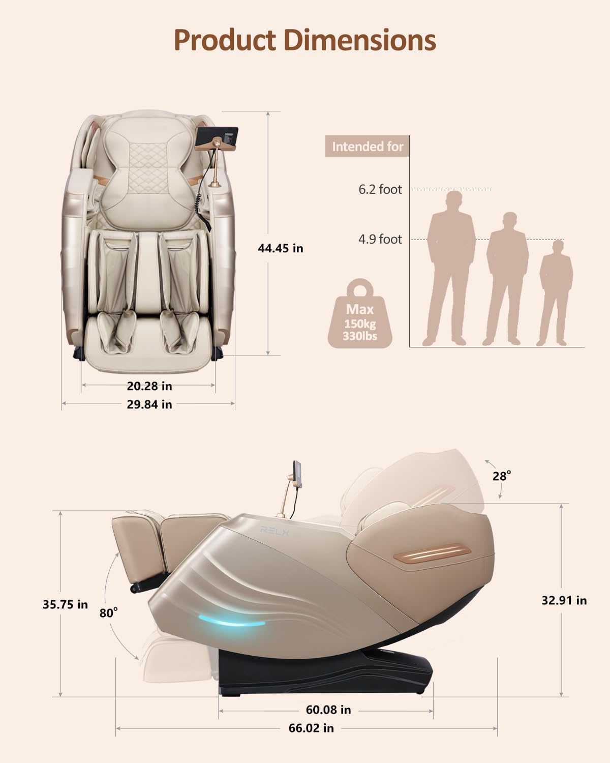 MD906 2026 Massage Chair - Full Body Zero Gravity Recliner with 3D Massage, Heat Therapy, Air Pressure & Foot Roller, Bluetooth & USB Charging Port for Home & Office Use (Beige)