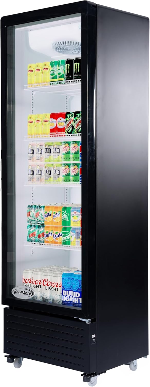 23 in. One Glass Door Commercial Display Merchandiser Refrigerator Cooler in Black, ETL Listed, 10 cu. ft. (KM-MDR-1GD-10C)