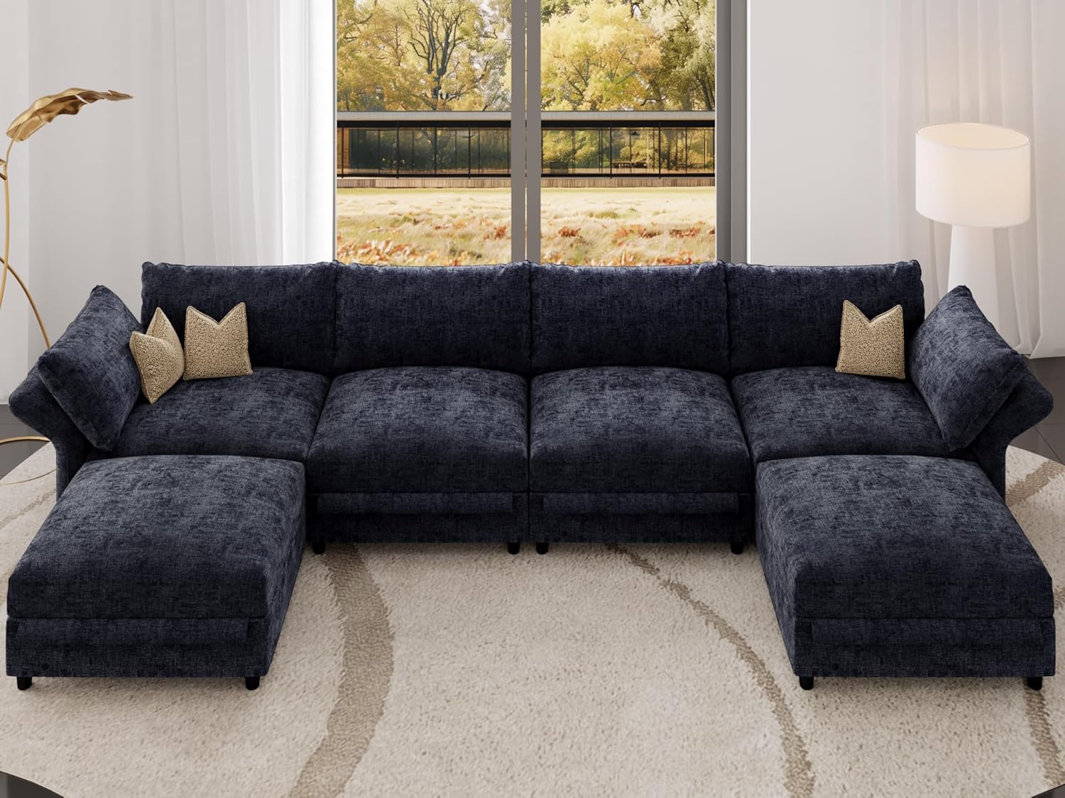 104" Cloud Sectional Couch, Boneless Couches for Living Room, L Shaped Couch with Ottoman, Modular Sectional Sofa with Deep Seat, Modern Boneless Sofa for Living Room, No Assembly (Grey, L-Shaped)