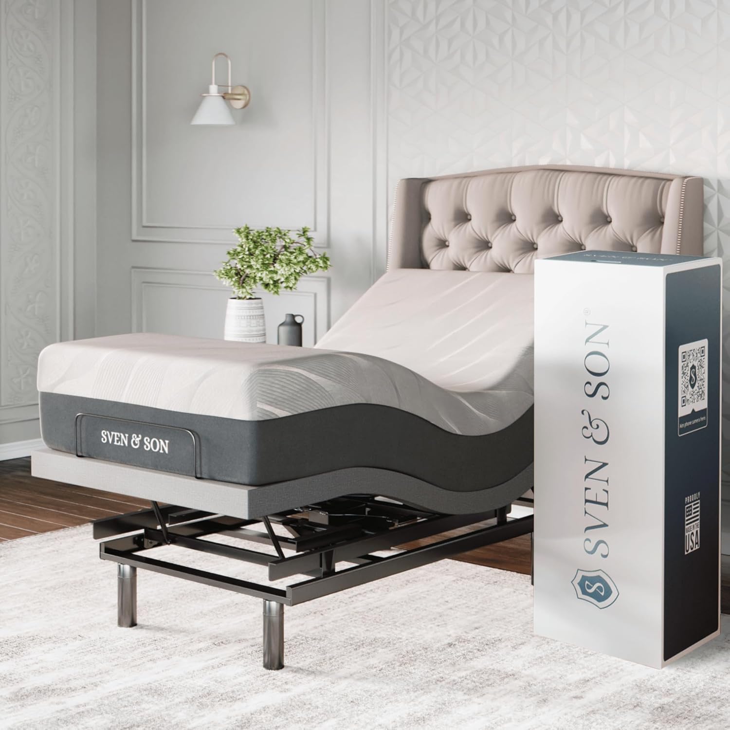 Walnut Table+4 Checkered Beige Chairs