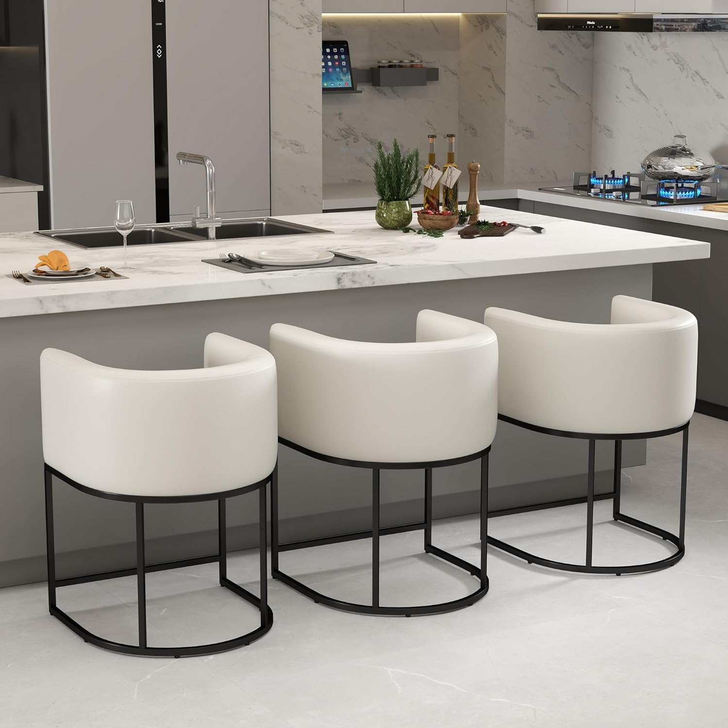 Natural Table+6 Checkered Beige Chairs
