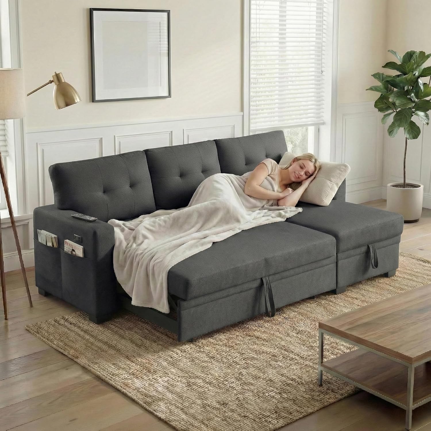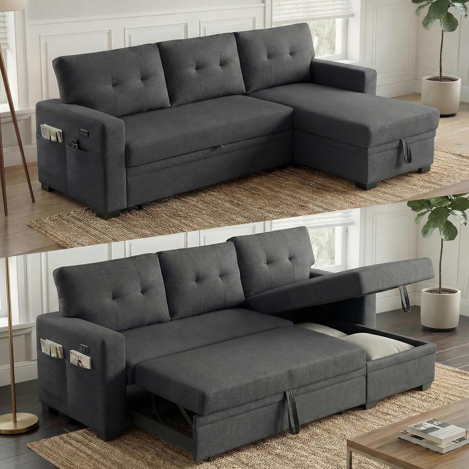 King Size Bed Frame with 6 Storage Drawers King Bed Frame and Headboard, Storage Bed with Charging Station, No Noise,No Box Springs Needed,Vintage Brown