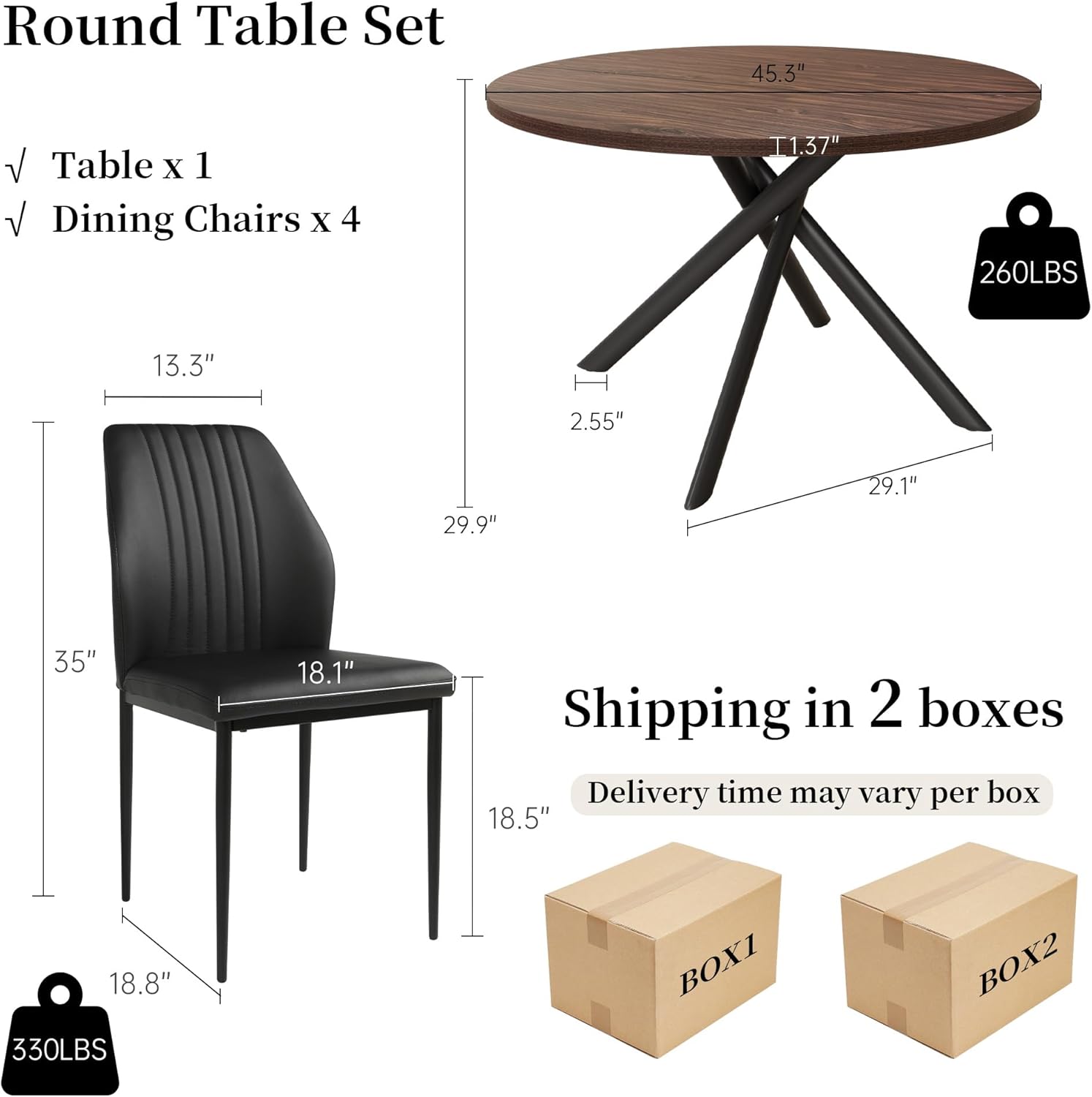 Dark Walnut Table+4 U-shaped Brown Chairs