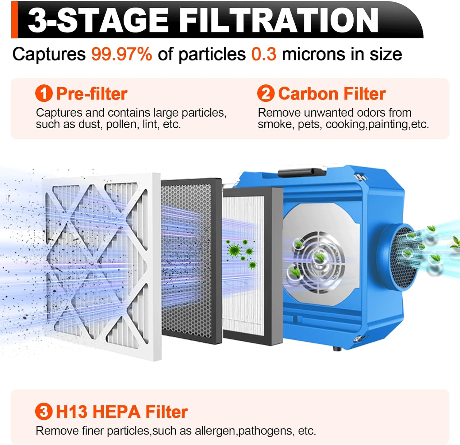 Industrial Air Scrubber with 3-Stage HEPA Filtration, 0550 CFM Adjustable Airflow, Timer 099 Hours, Covers 800 Sq.Ft, Plug & Play, for Home and Commercial Use