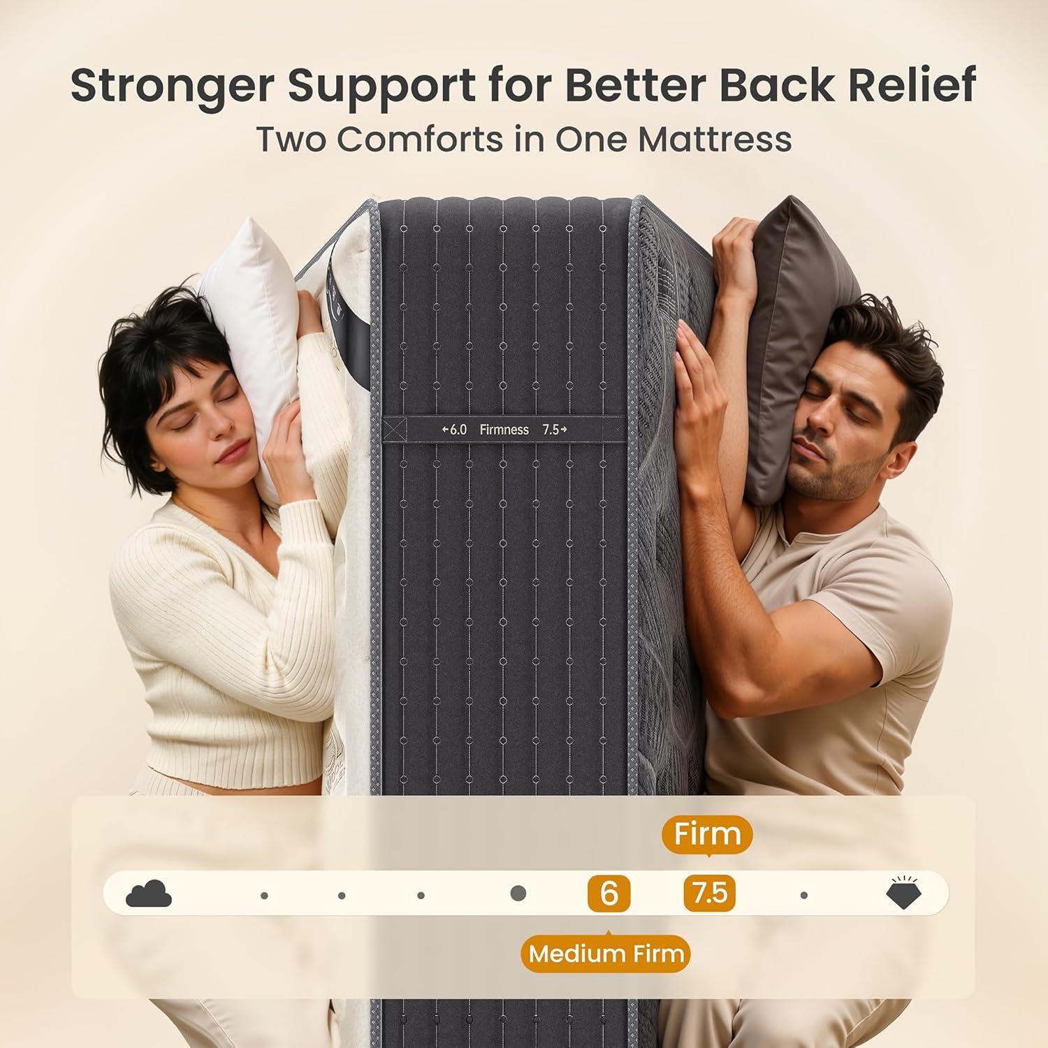 14 Inch Cashmere Hybrid Queen Mattress in a Box, Dual-Sided Medium Firm & Firm, Cooling Gel Memory Foam Mattress, Pocket Springs for Motion Isolation, Pressure Relief, CertiPUR-US Certified