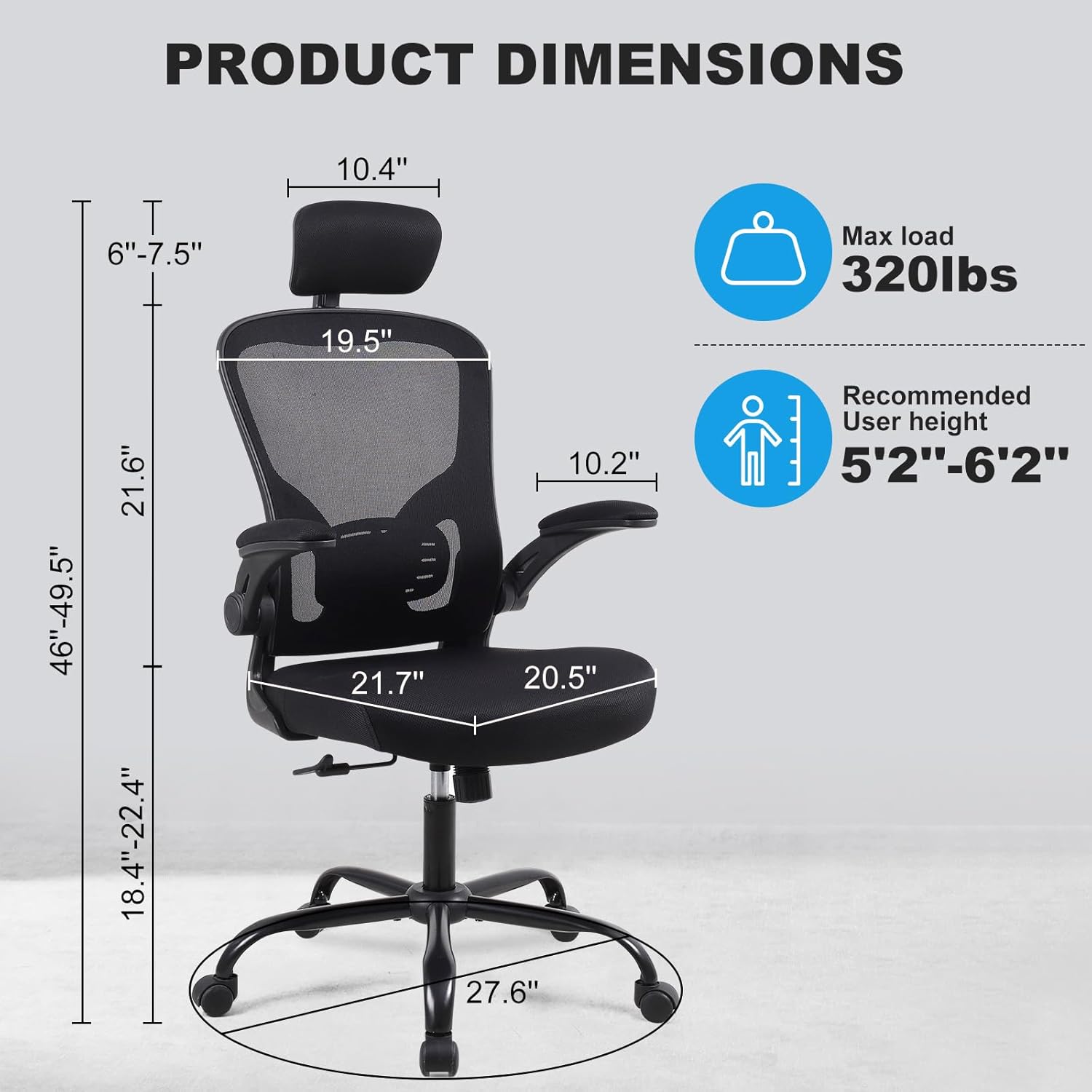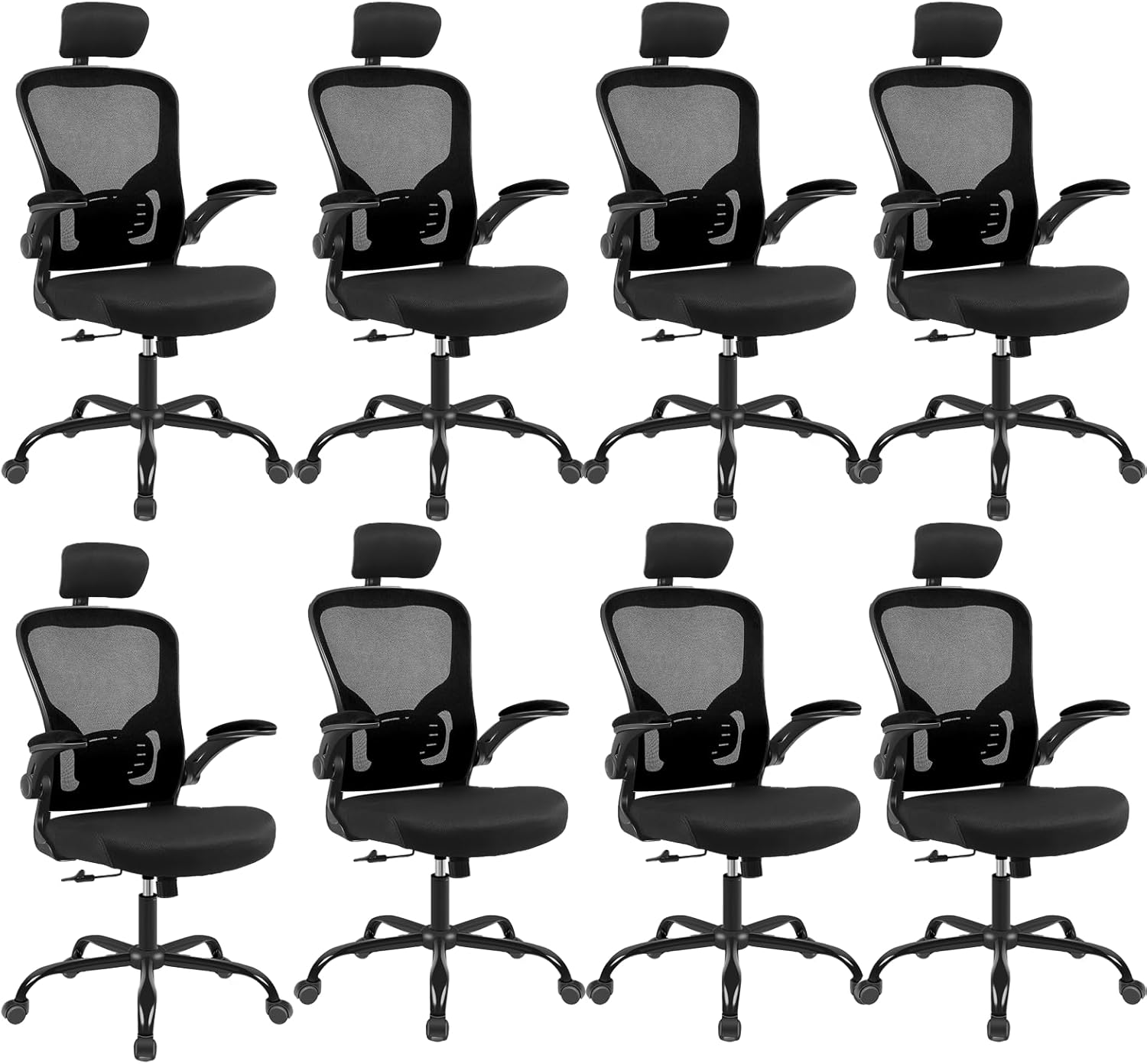 8 Pack Ergonomic Office Chair with 3D Adjustable Headrest, Mesh Home Office Desk Chairs with Lumbar Support & Flip-Up Armrests for Office, Home and Conference Room(8 Pack)