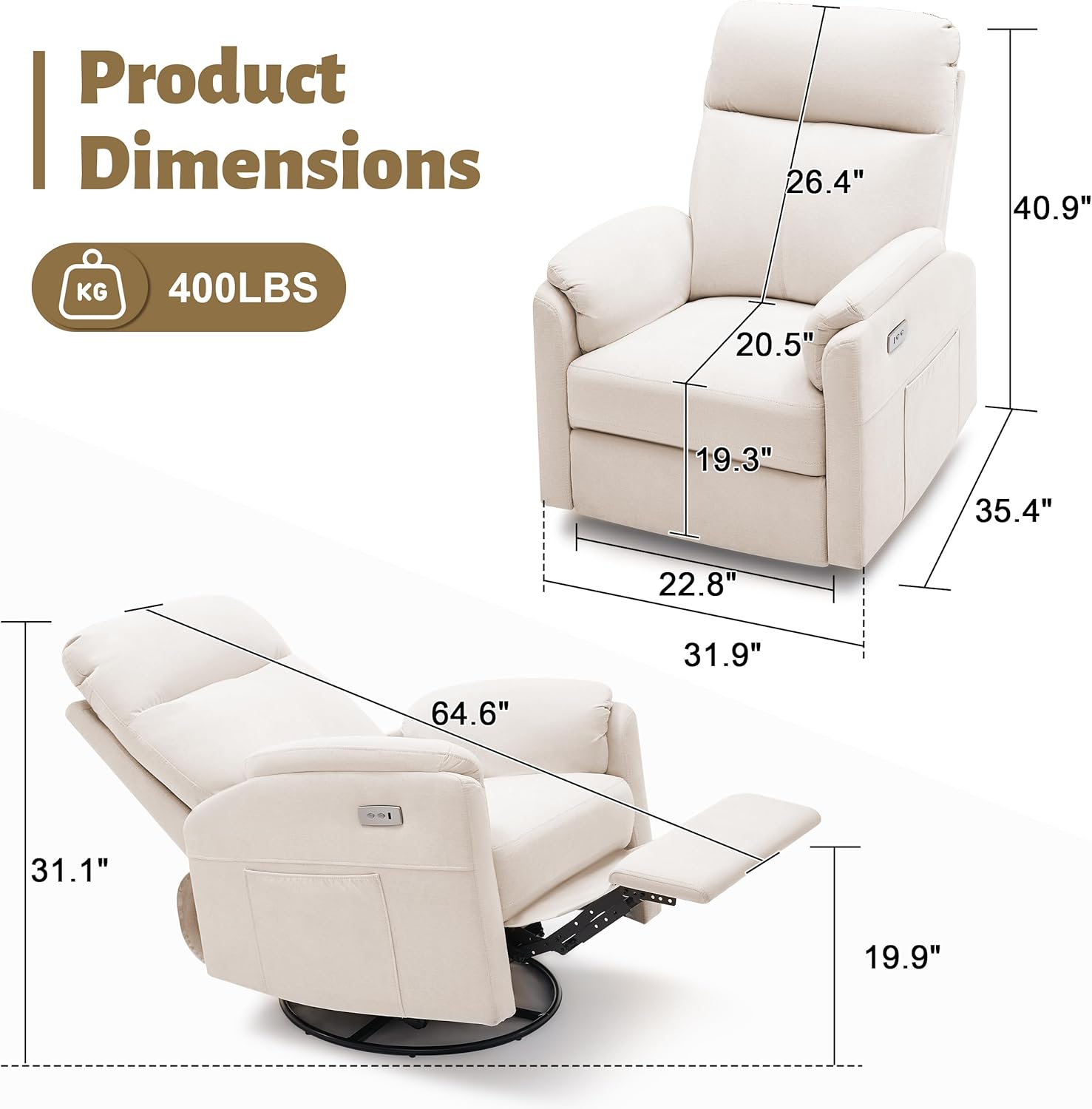 Power Glider Recliner Nursery Rocking Chair with USB Ports, Glider Chair with Lumbar Pillow for Living Room, Glider Swivel Recliner Chair for Nursery(Beige)