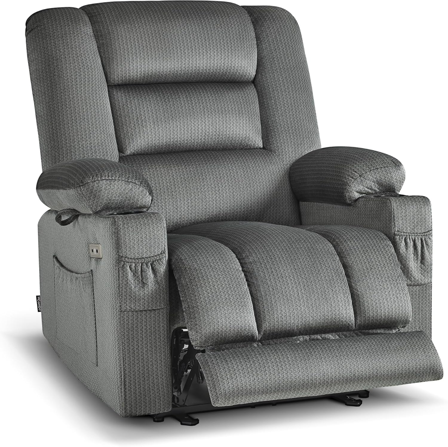 Oversized Recliner Chair for Big and Tall, Zero Gravity Recliner with Massage and Heat, USB & Type C Ports, Cup Holders for Living Room PR671(Grey, Oversized)