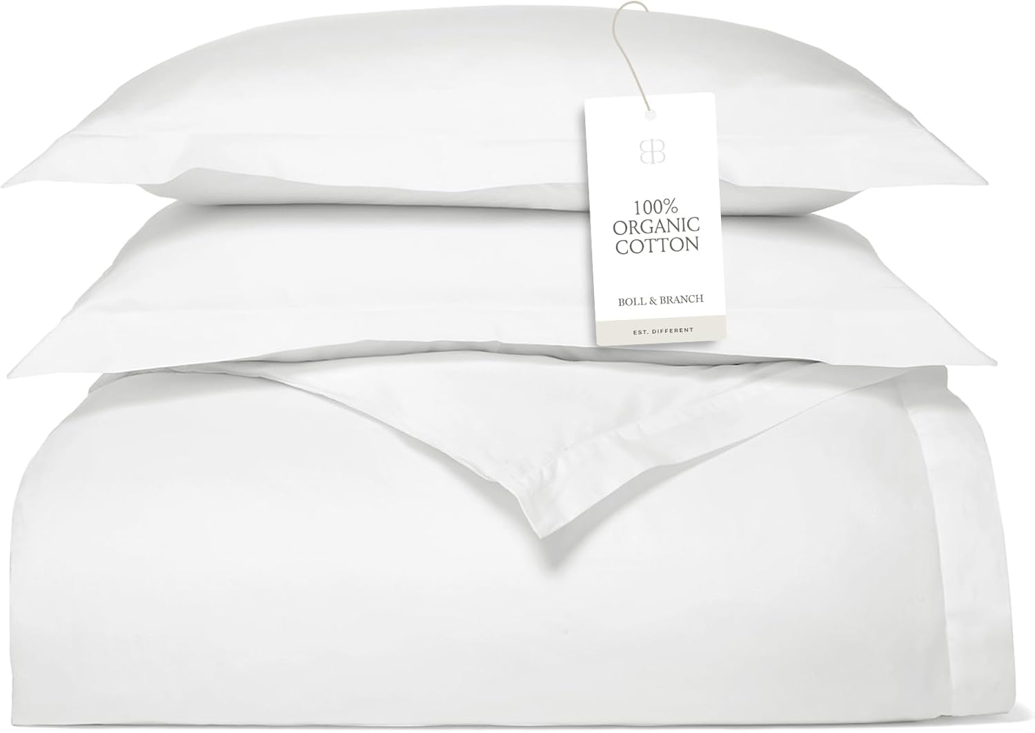 Signature Hemmed Duvet Set - Full/Queen, White - Luxury 100% Organic Cotton - 1 Duvet Cover, 2 Shams - Buttery Soft, Hidden Closures